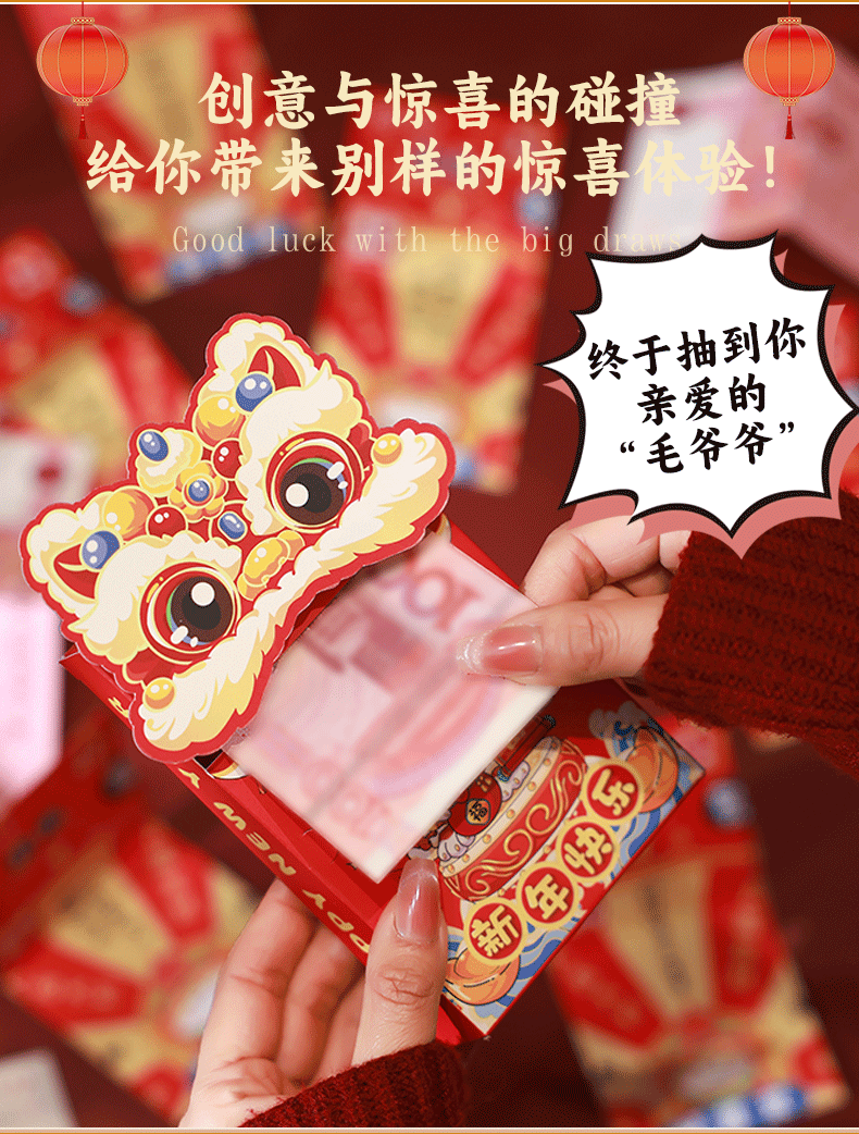 创意抽拉新年送人拜年压岁惊喜礼物小红包新款过年生肖红包袋 投诉