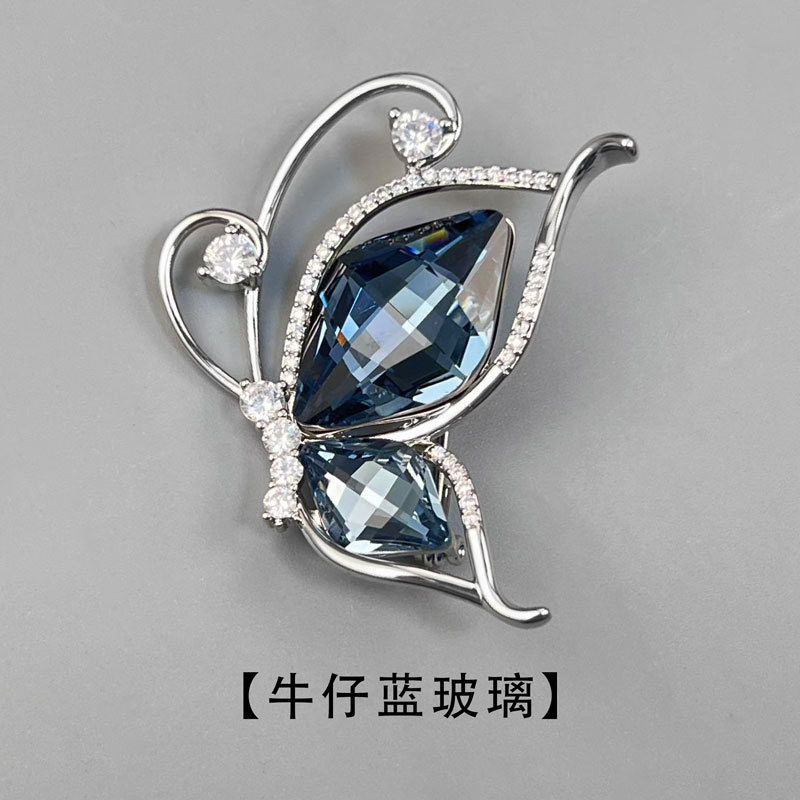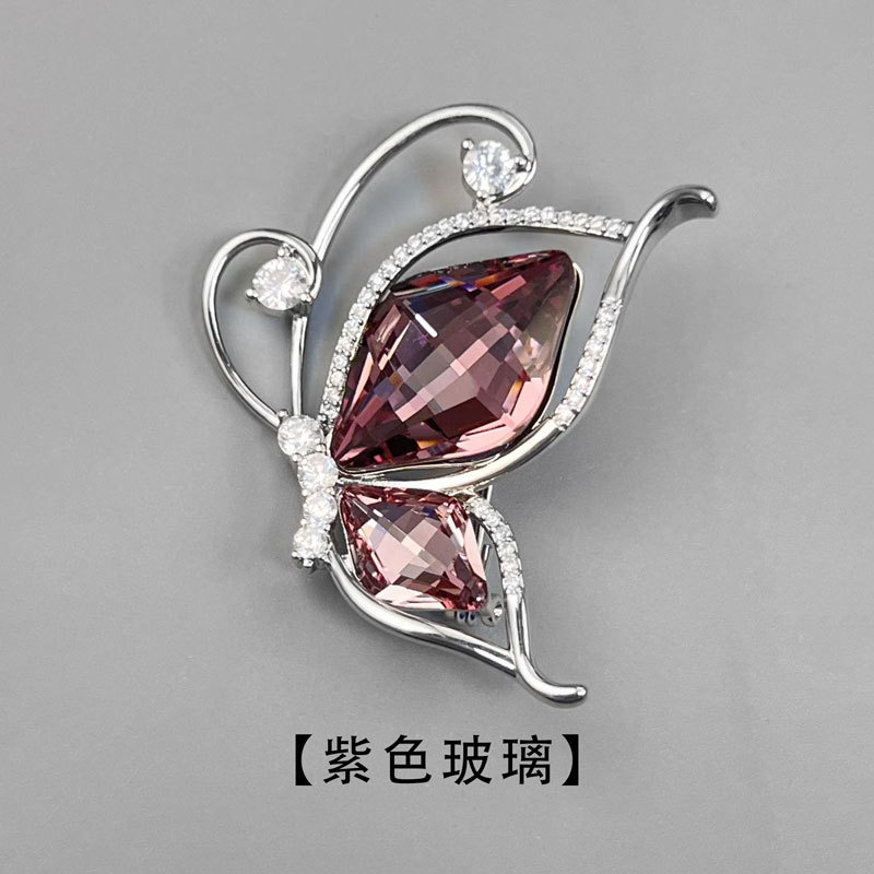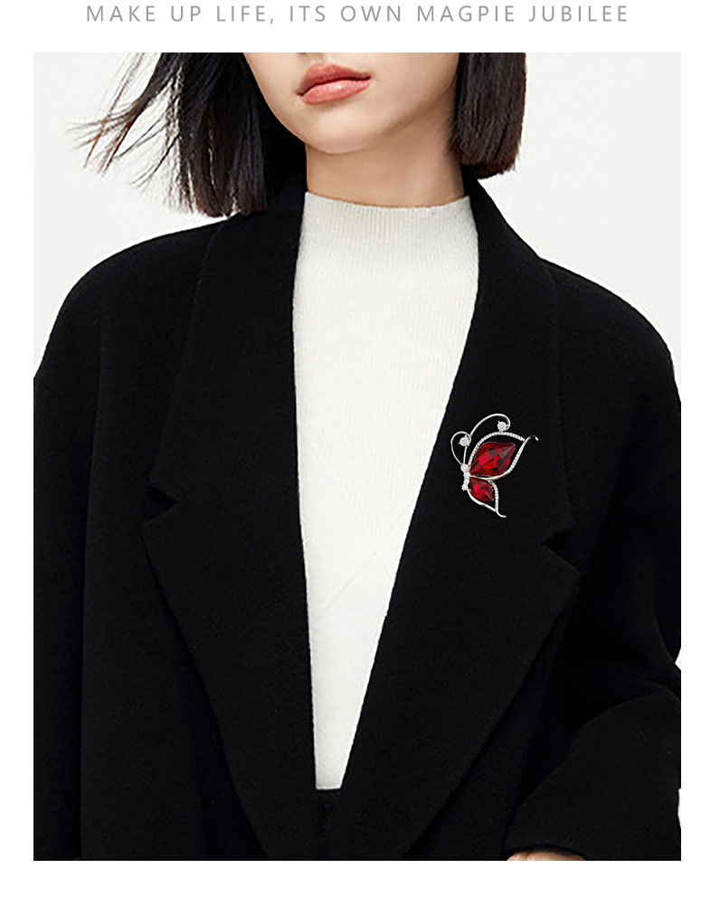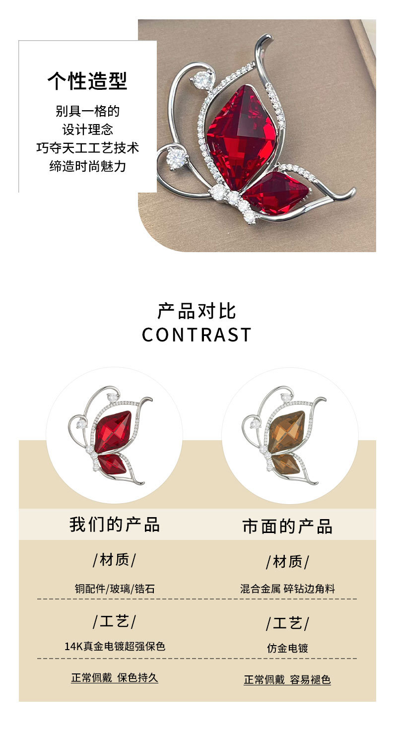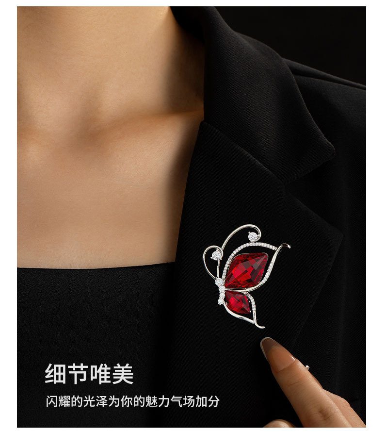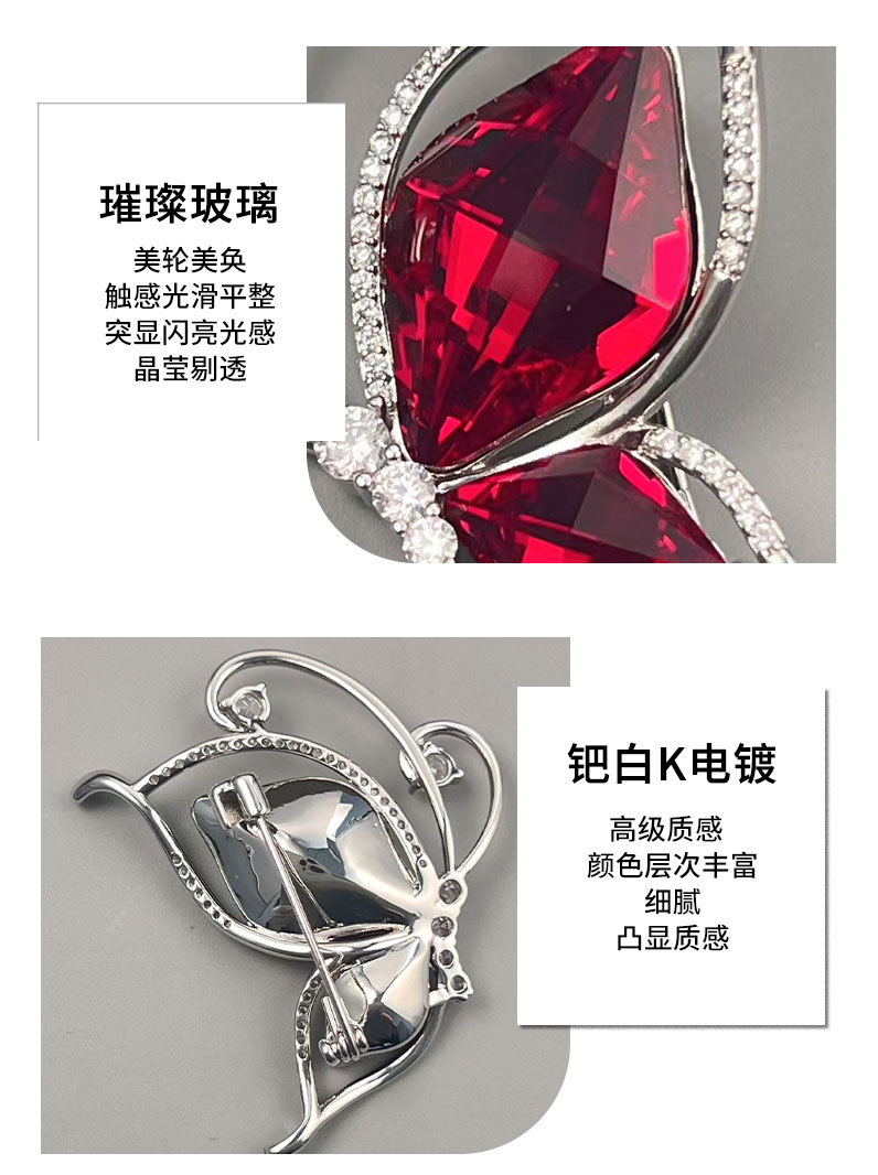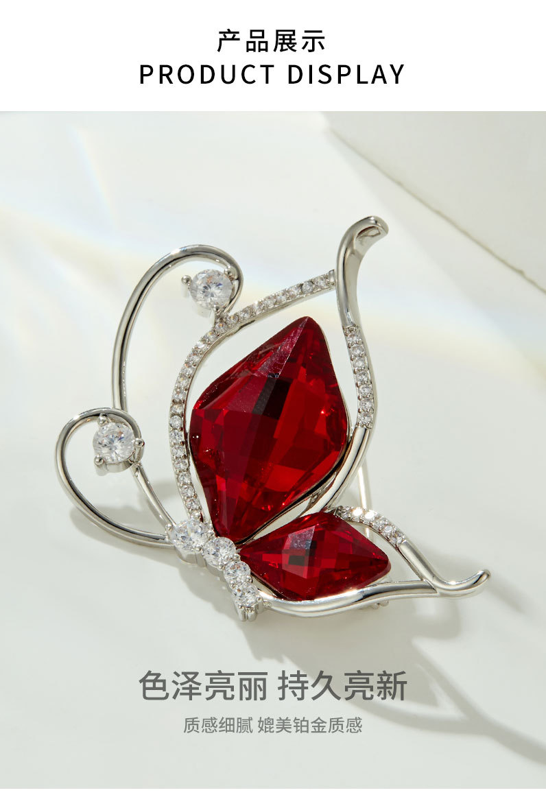 安可拉红水晶蝴蝶胸针时尚简约微镶锆石昆虫胸花新款百搭精致别针 投诉