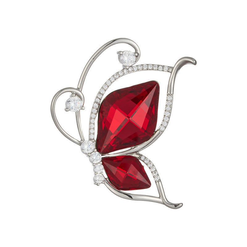 安可拉红水晶蝴蝶胸针时尚简约微镶锆石昆虫胸花新款百搭精致别针