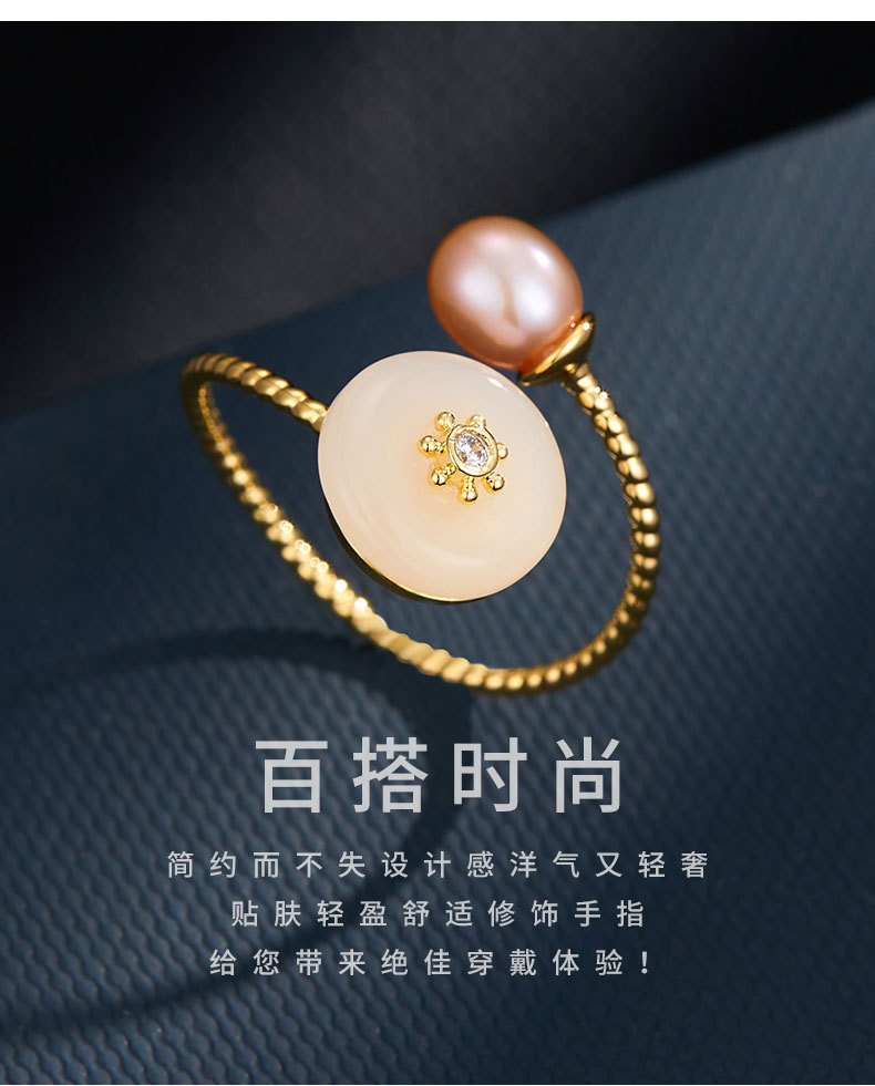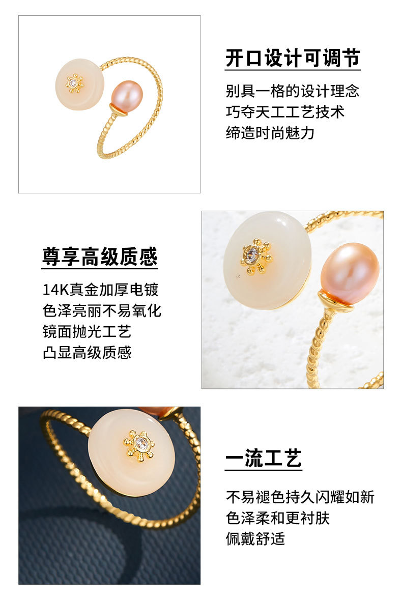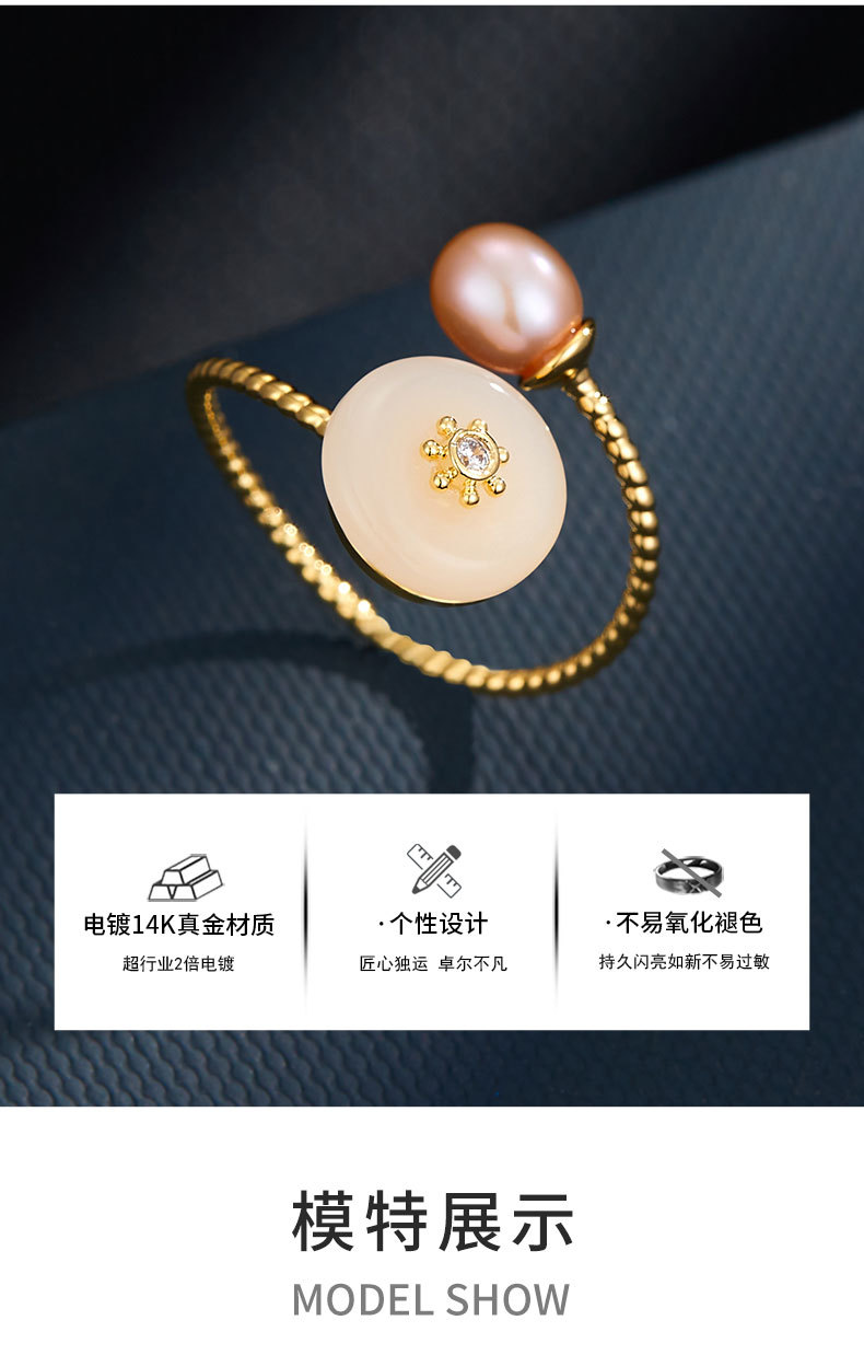 复古优雅淡水珍珠仿玉开口戒指新中式高级感可调节指环新款食指戒 投诉