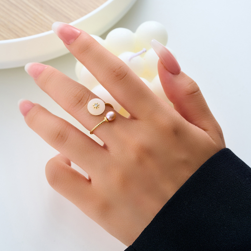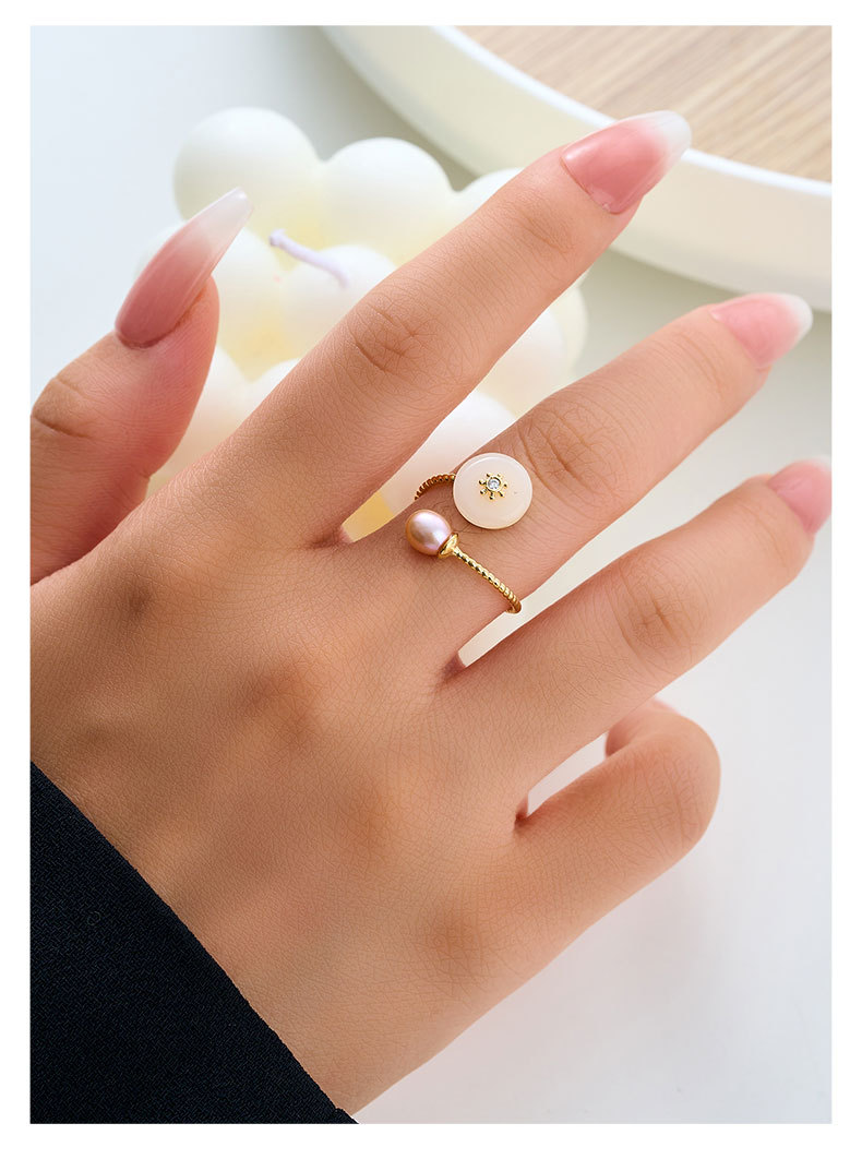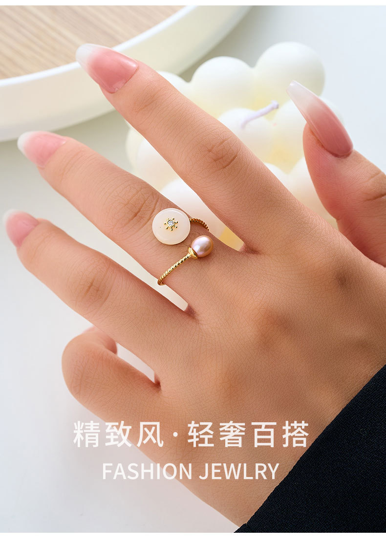 复古优雅淡水珍珠仿玉开口戒指新中式高级感可调节指环新款食指戒