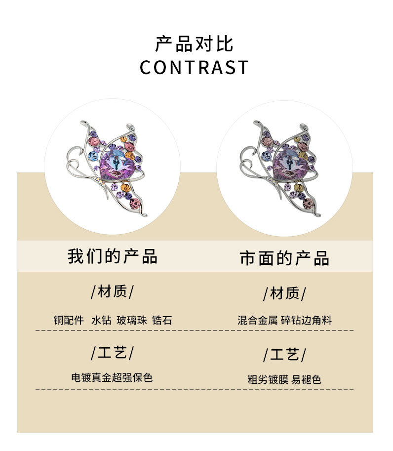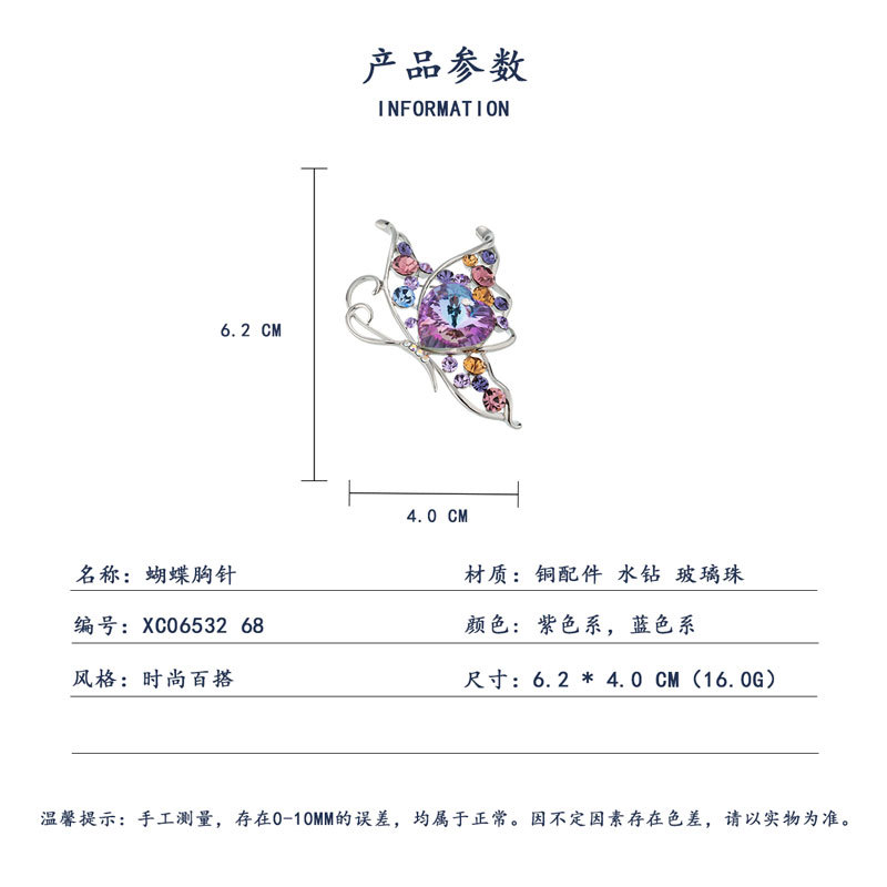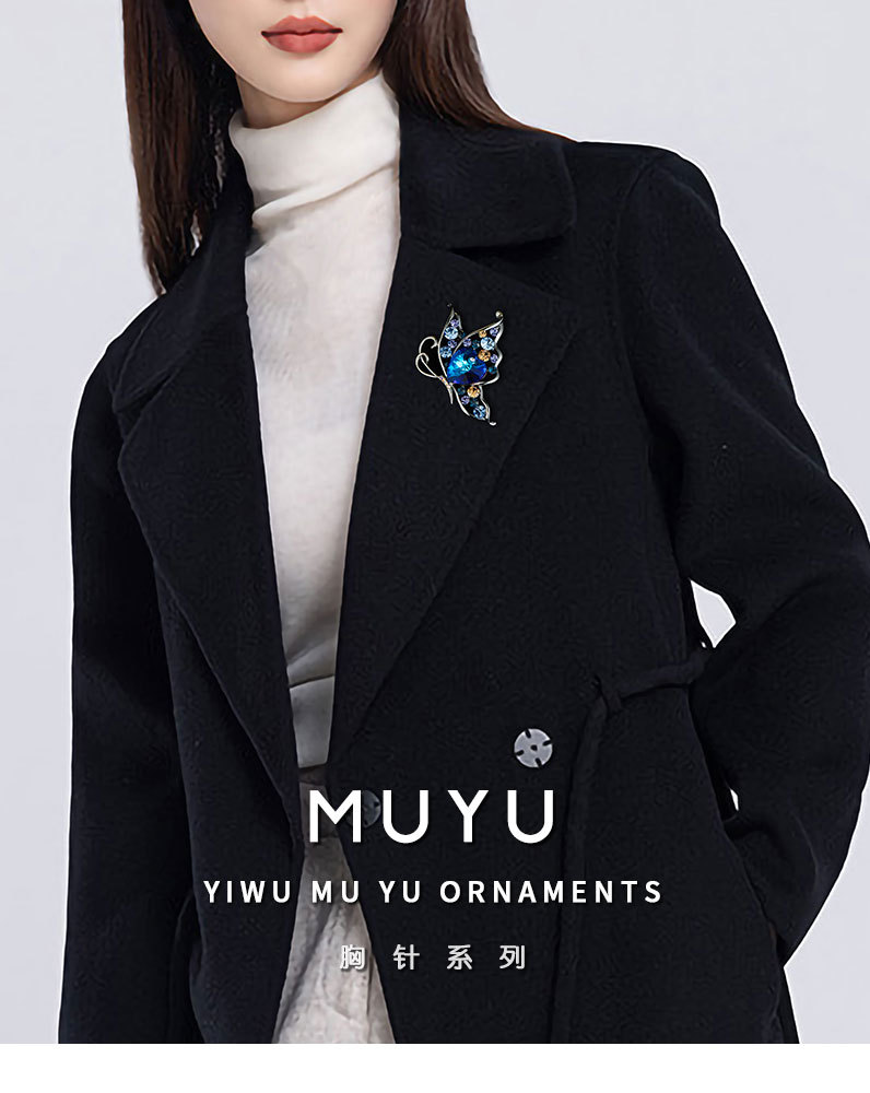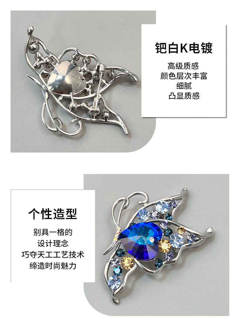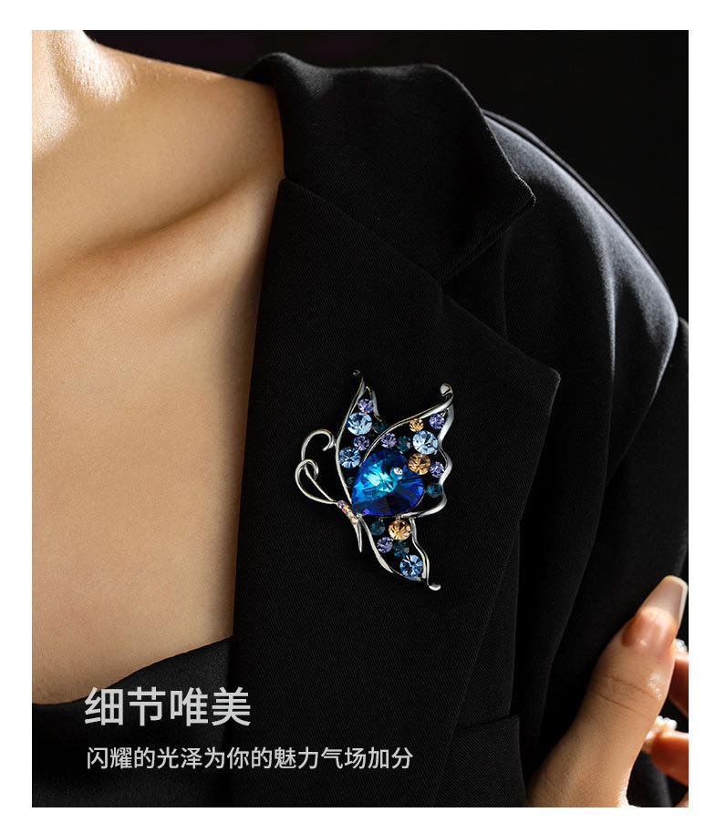 时尚优雅水晶蝴蝶胸针女小众高级感镂空昆虫胸花新款精致西装别针 投诉