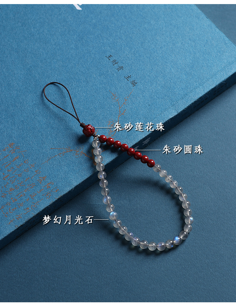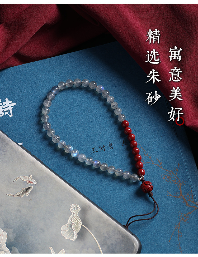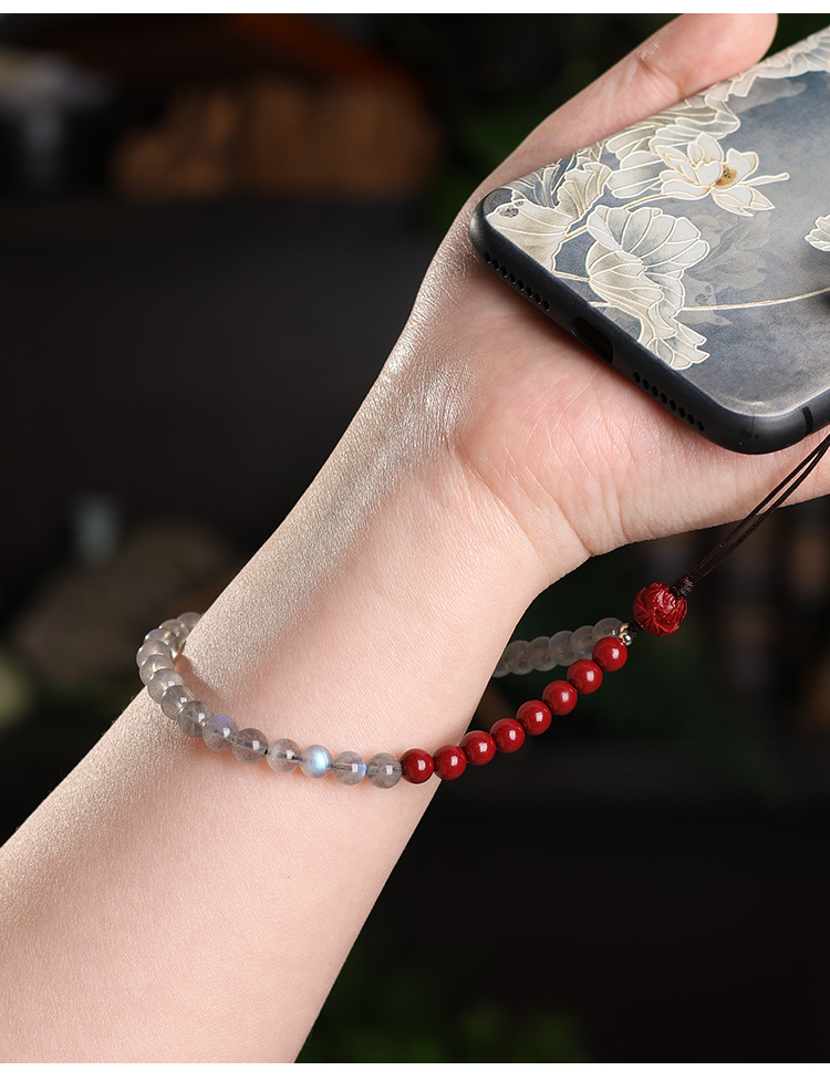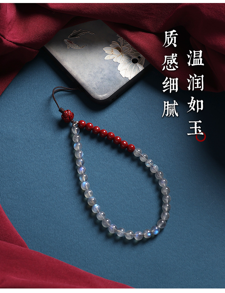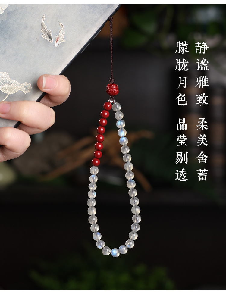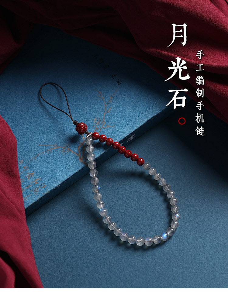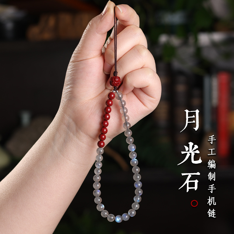 天然灰月光石手机链挂件男女高端精致紫金砂手机壳挂绳防丢挂饰链 English | 投诉