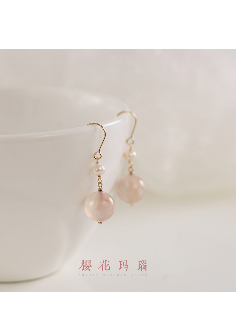 原创天然珍珠樱花玛瑙耳环女个性古风小众设计感耳坠14K包金轻奢 English | 投诉