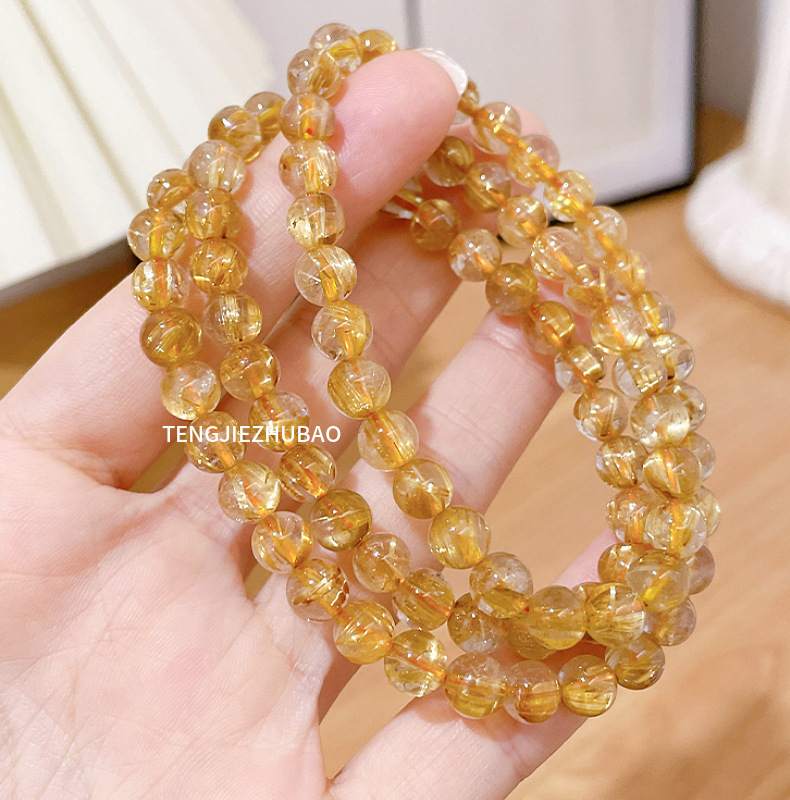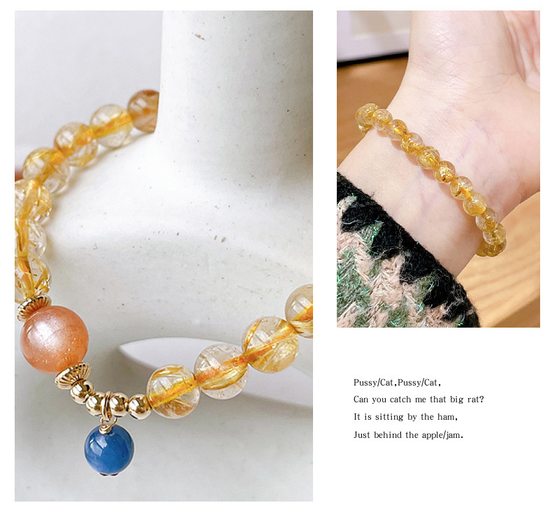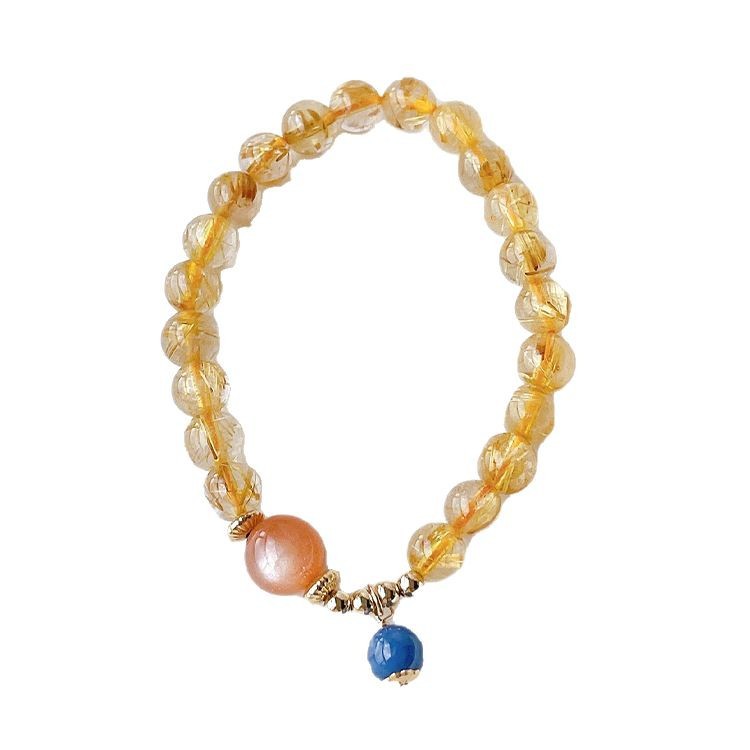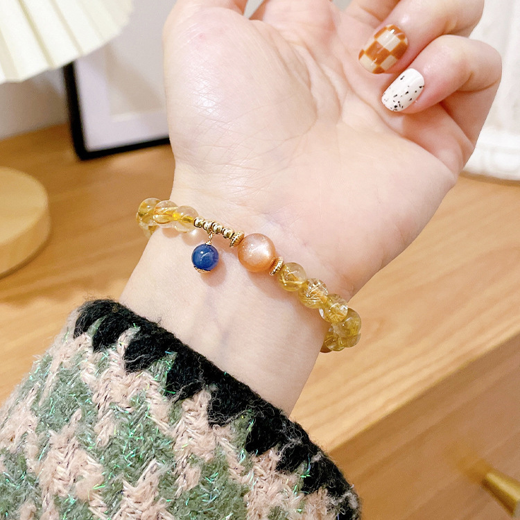 金发晶8mm太阳石蓝晶石三圈14包金手链手串女款时尚秀气精致百搭 English | 投诉