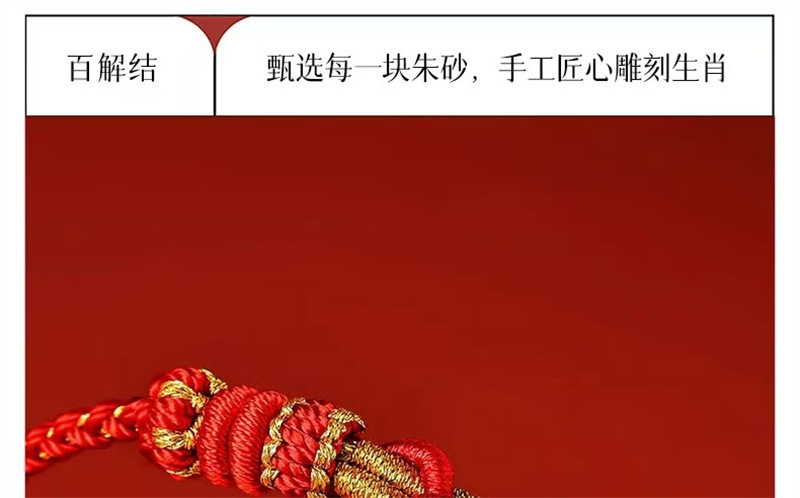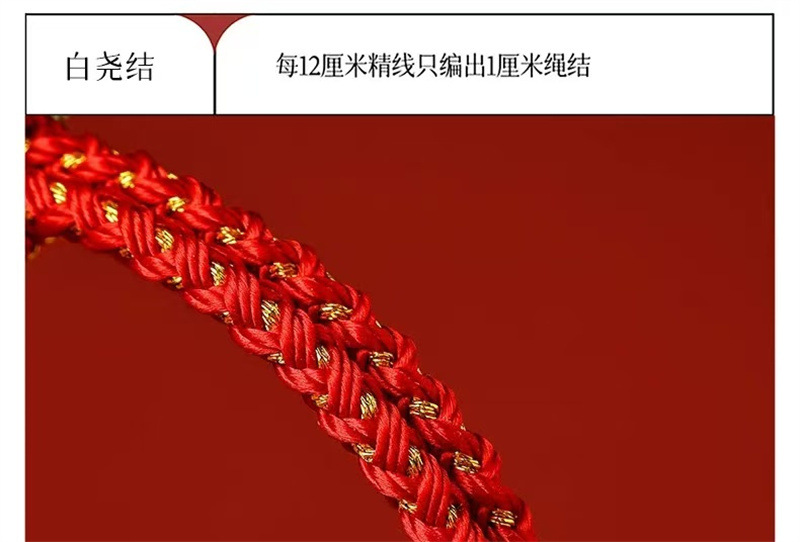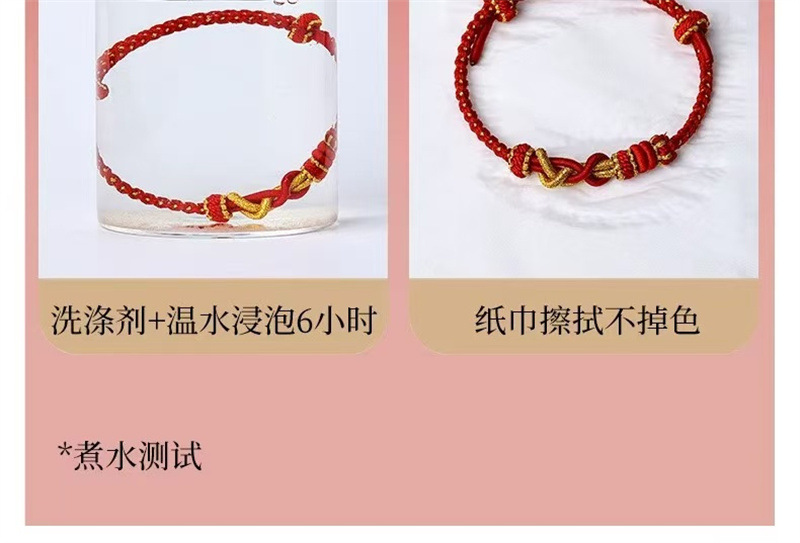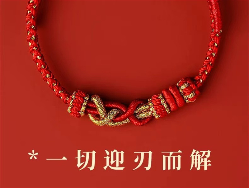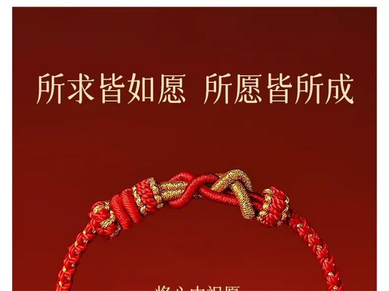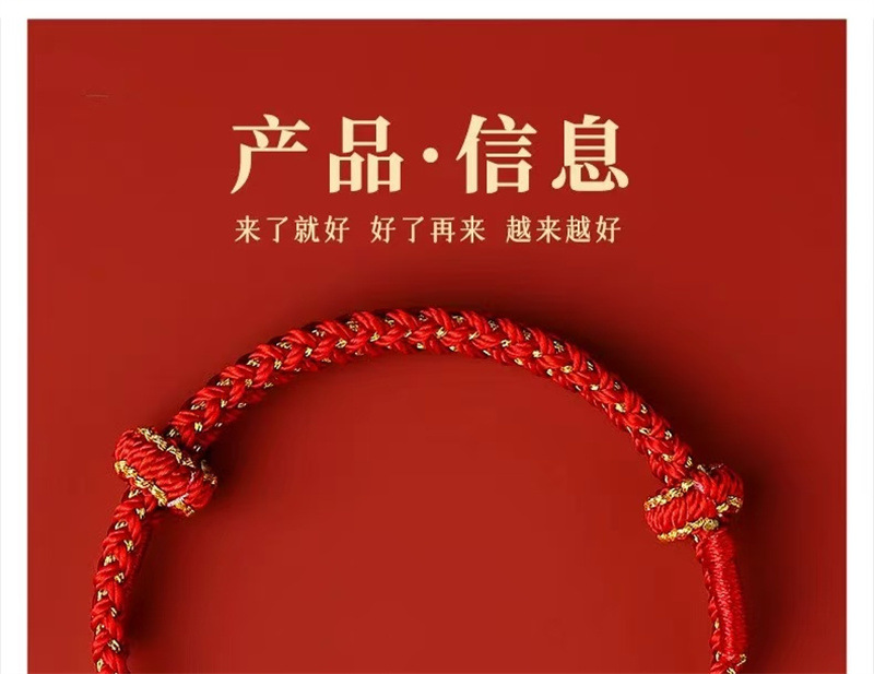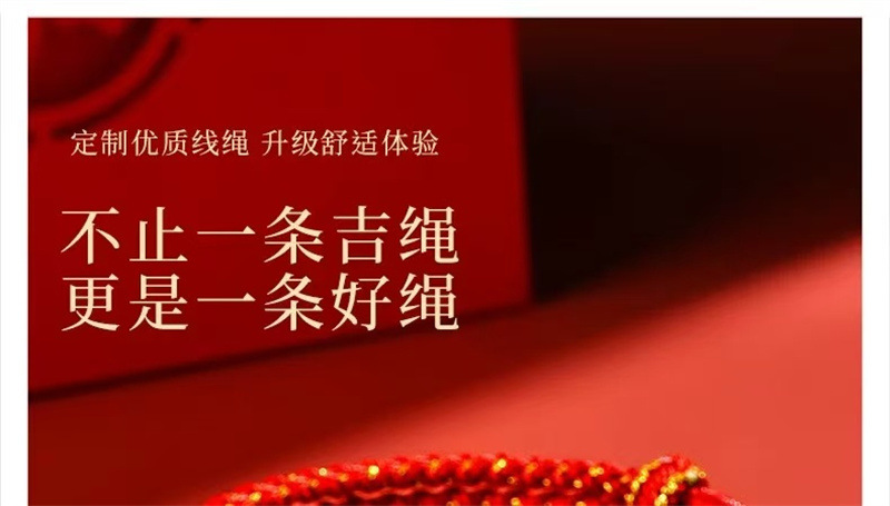 材质: 红绳 处理工艺: 手工编织 种类: 红绳 流行元素: 国潮 样式: 男女通用 风格: 民族风 上市年份/季节: 2024 颜色: 百解绳 可调节 十二生肖通用 货号: 003 产地: 连云港 主要下游平台: 淘宝,京东,快手,天猫,拼多多,抖音 有可授权的自有品牌: 是 是否跨境出口专供货源: 否 包装: 独立包装 品牌: DU 重量: 0.006 kg/条