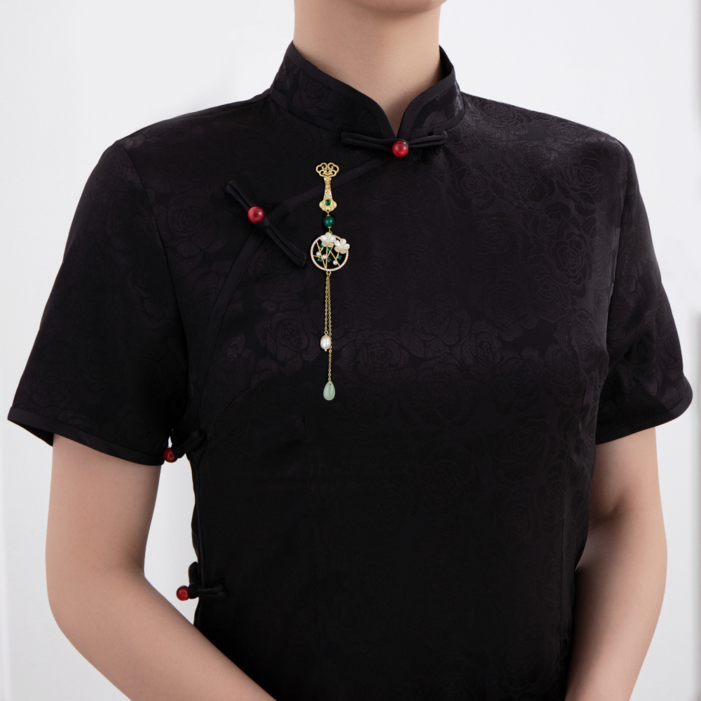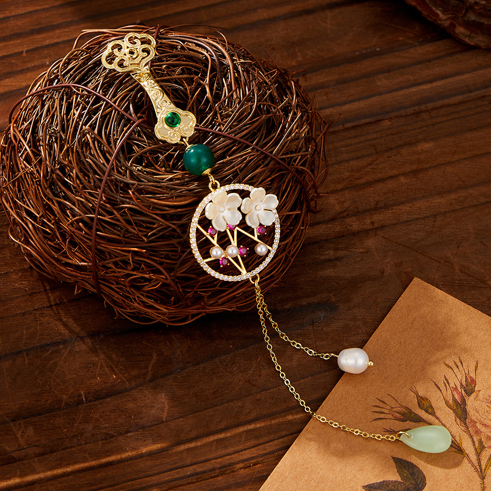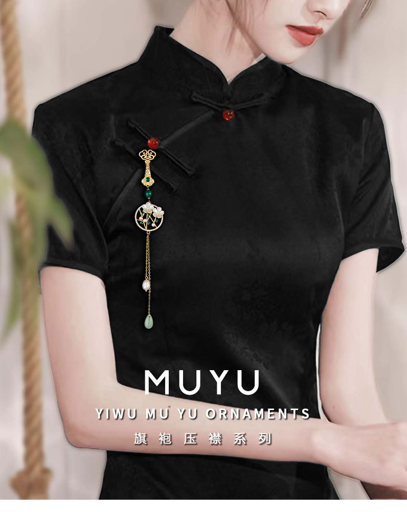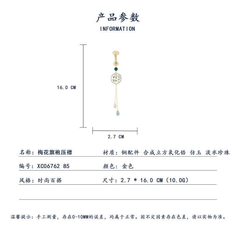 古风梅花旗袍压襟新中式高级感淡水珍珠仿玉镂空流苏挂件新款胸针 投诉