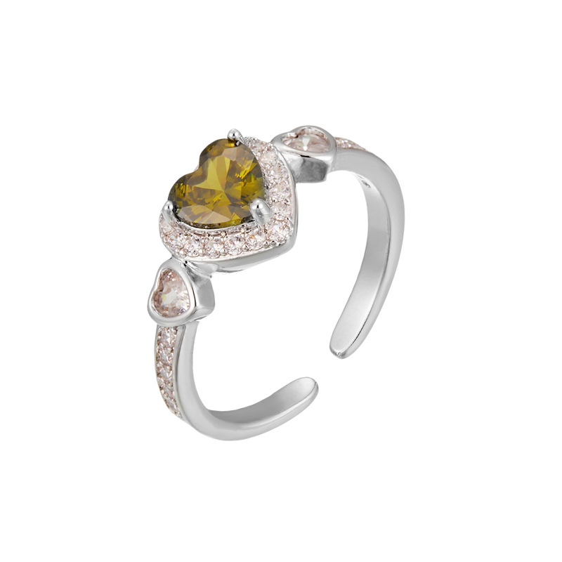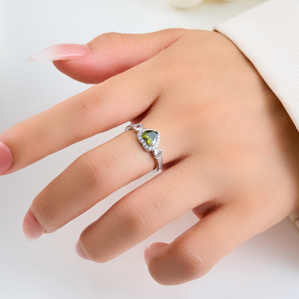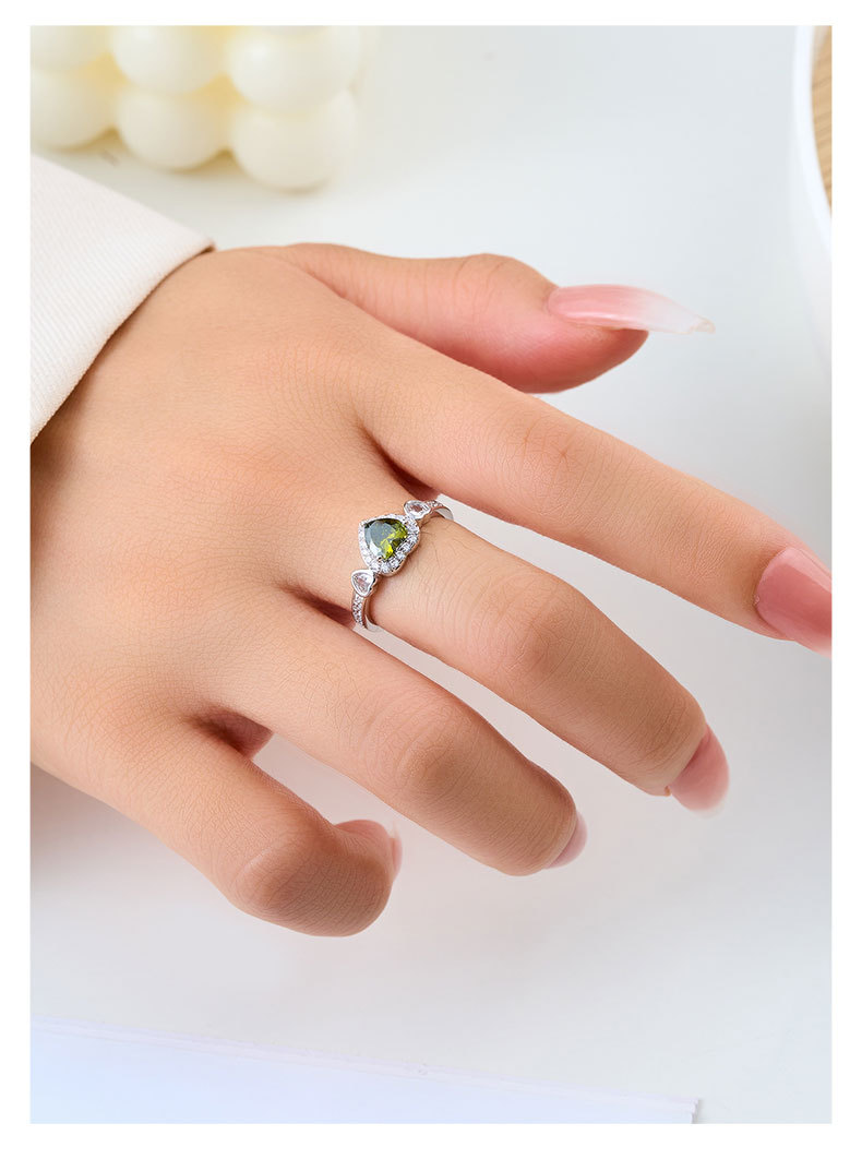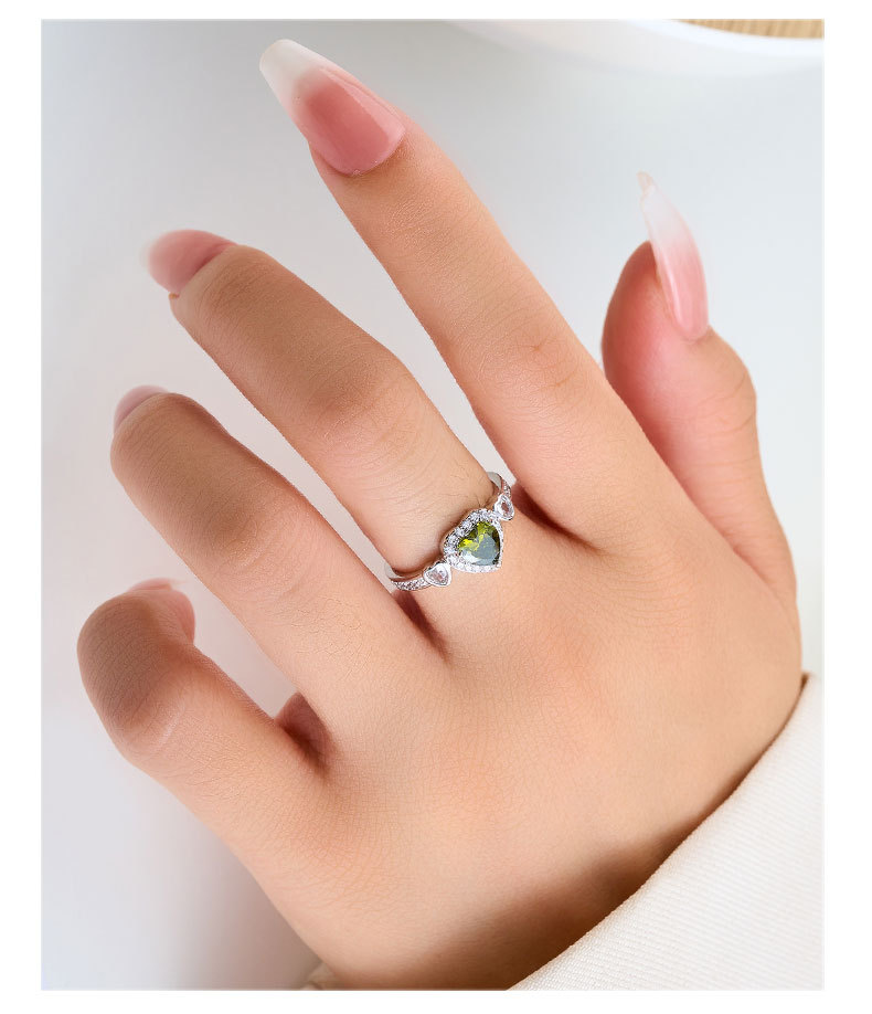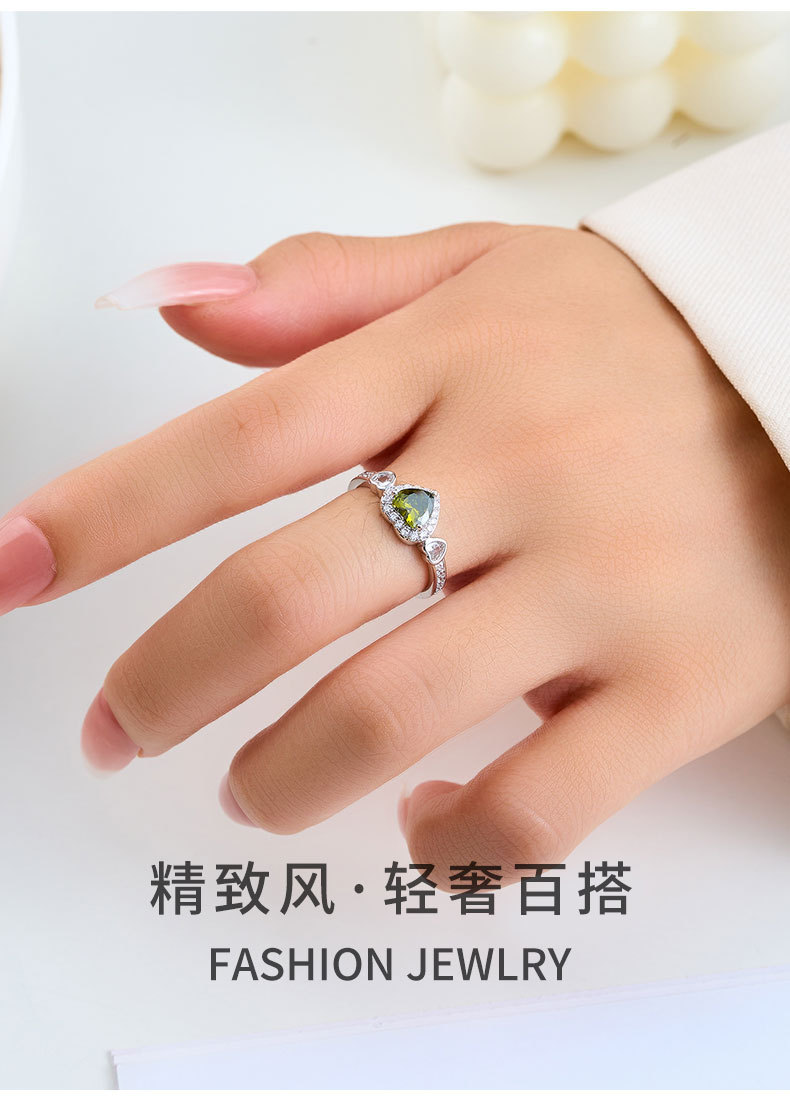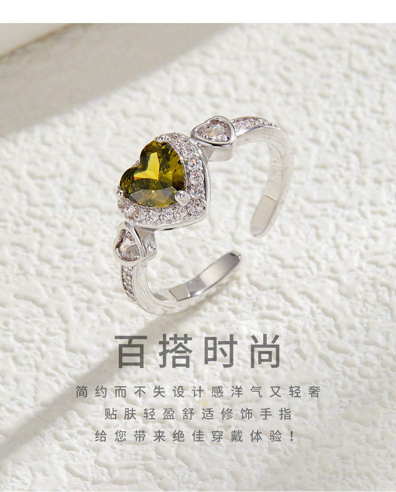 轻奢风橄榄绿爱心开口戒指女小众高级感可调节食指戒热销爆款指环