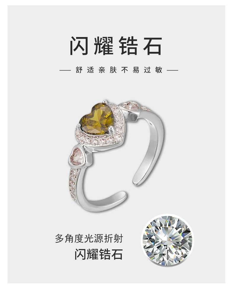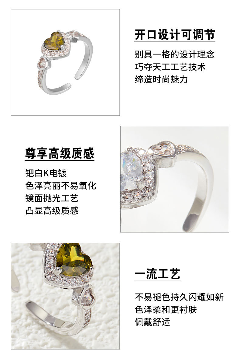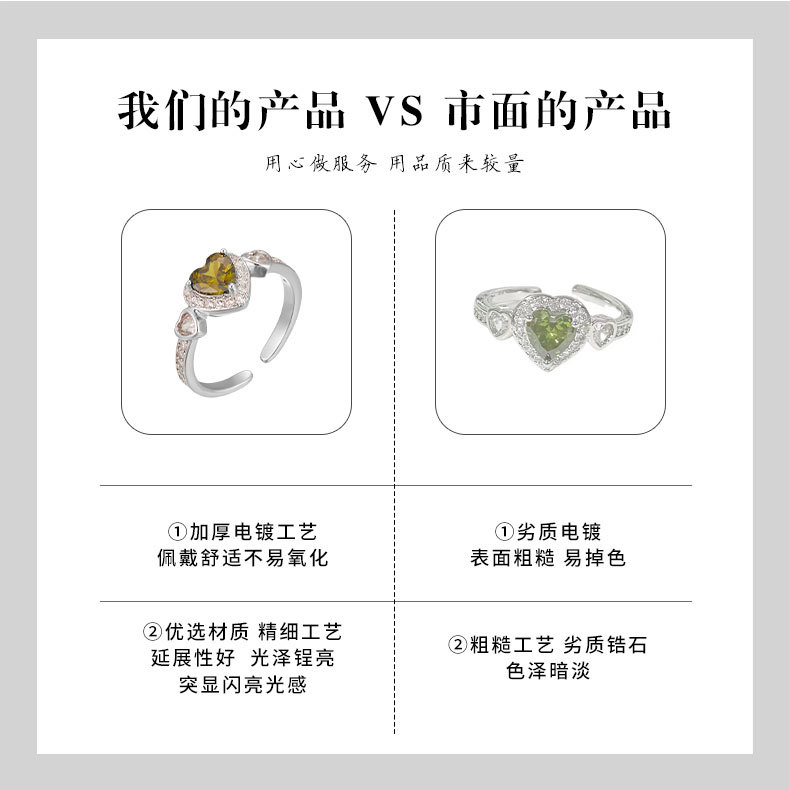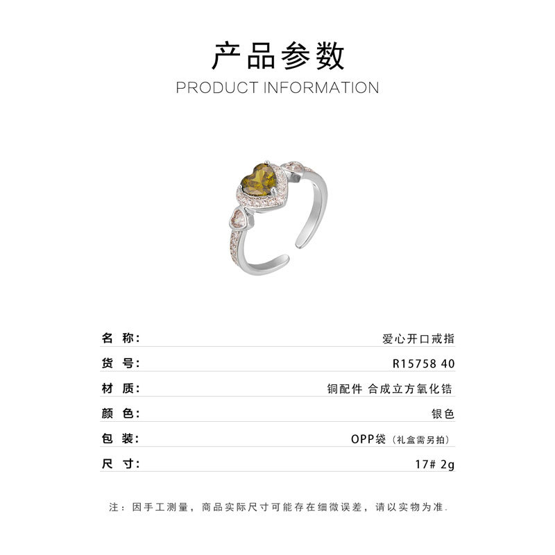 轻奢风橄榄绿爱心开口戒指女小众高级感可调节食指戒热销爆款指环 投诉