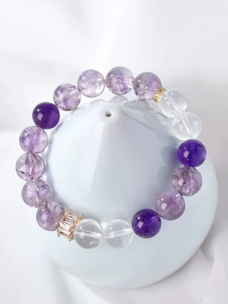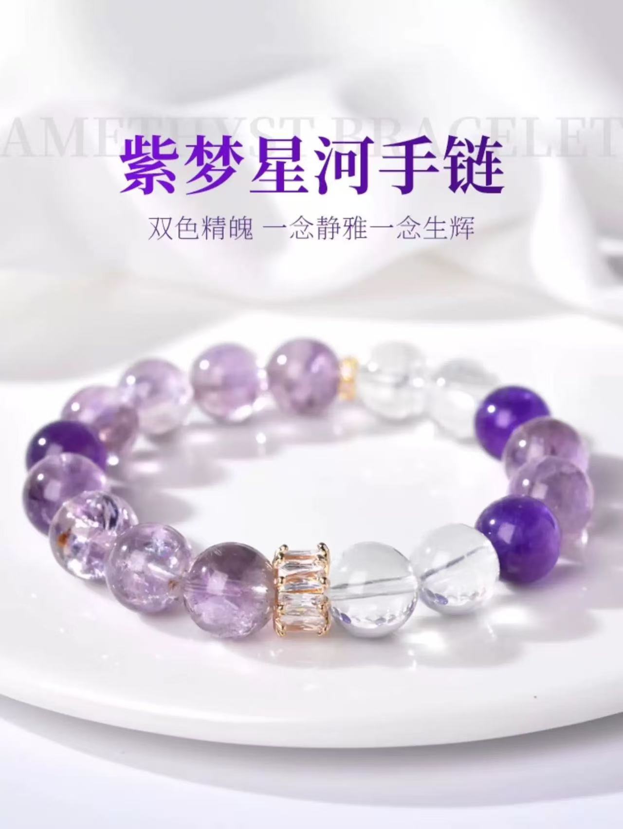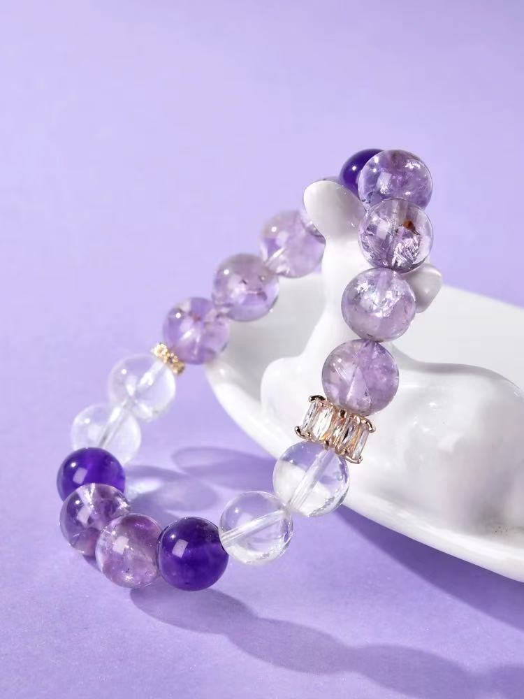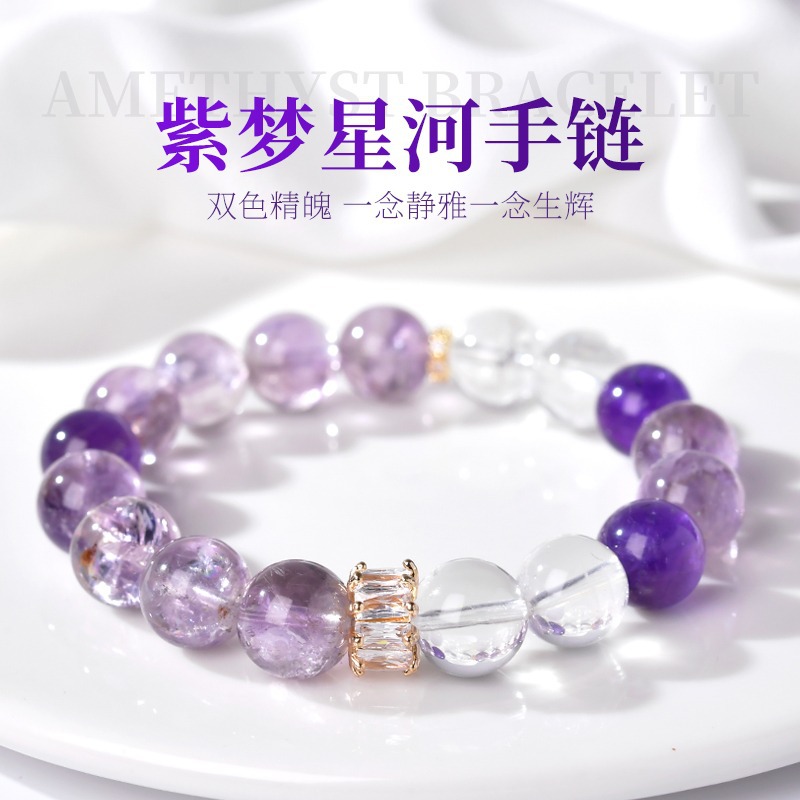 【紫梦星河】天然紫水晶设计手链女白水晶紫色串珠手串饰品礼物 English | 投诉