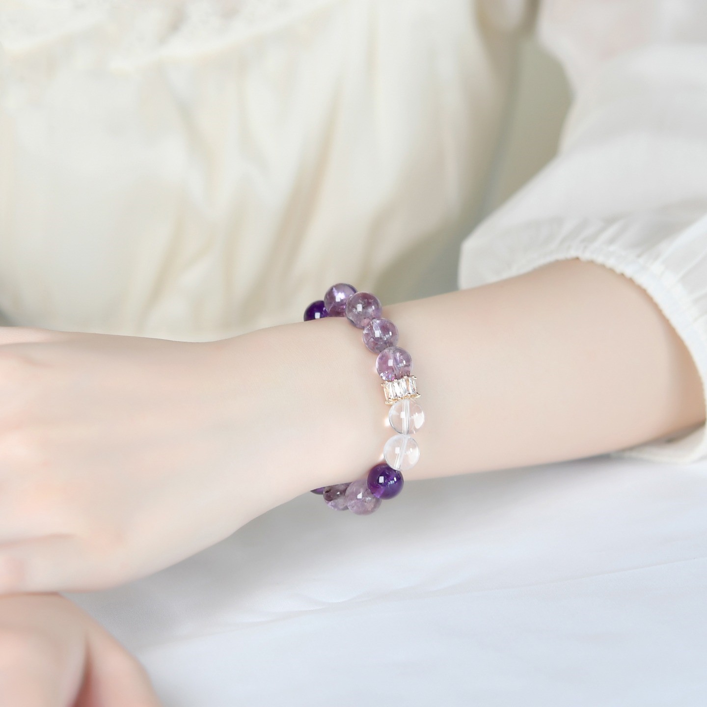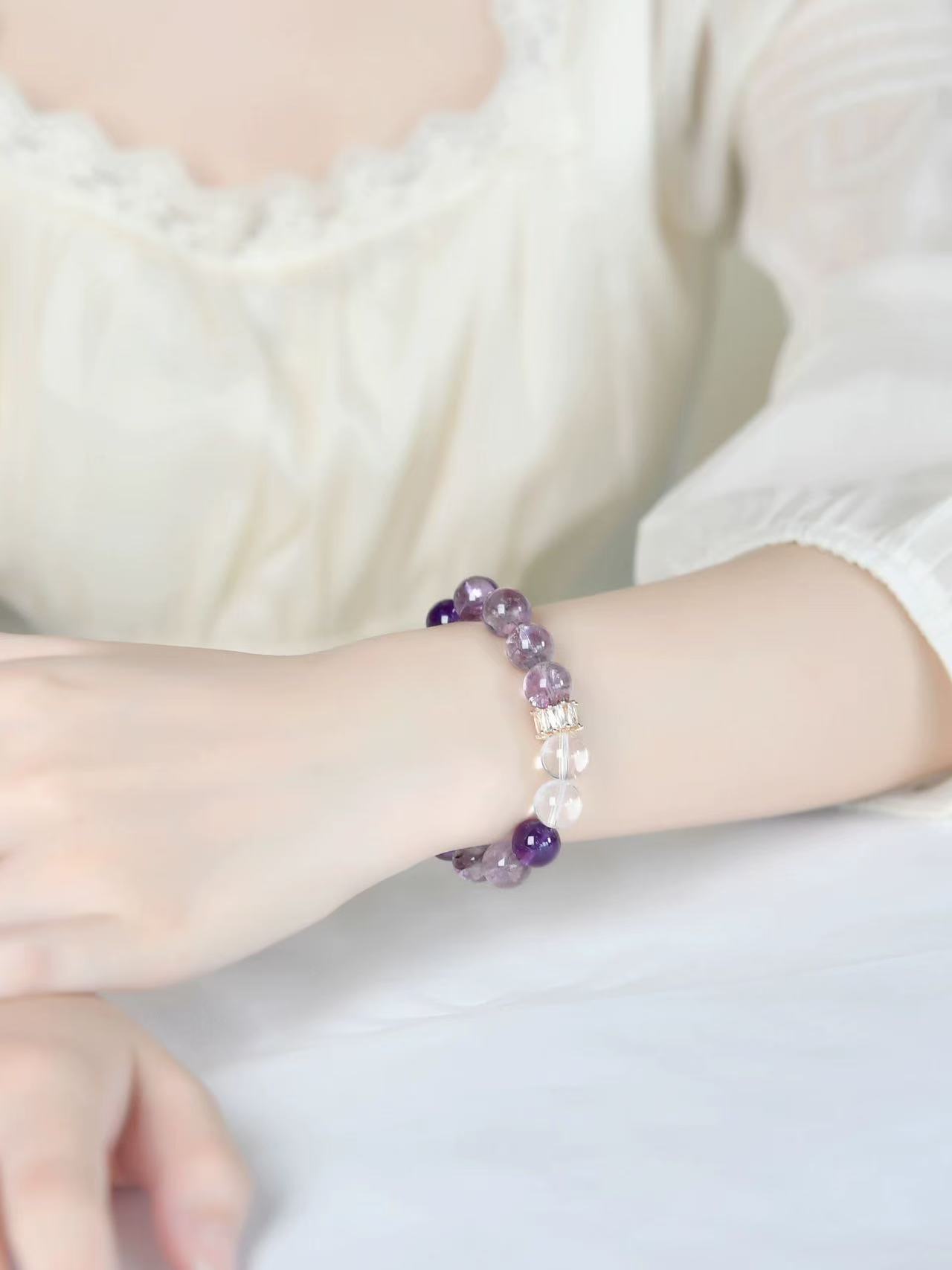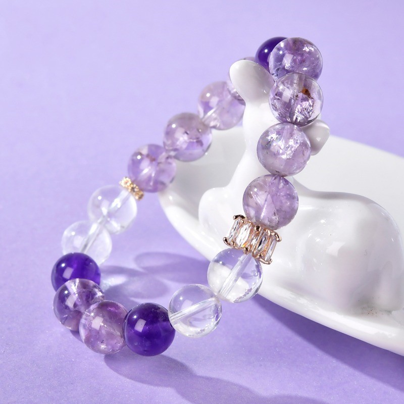 【紫梦星河】天然紫水晶设计手链女白水晶紫色串珠手串饰品礼物 English | 投诉