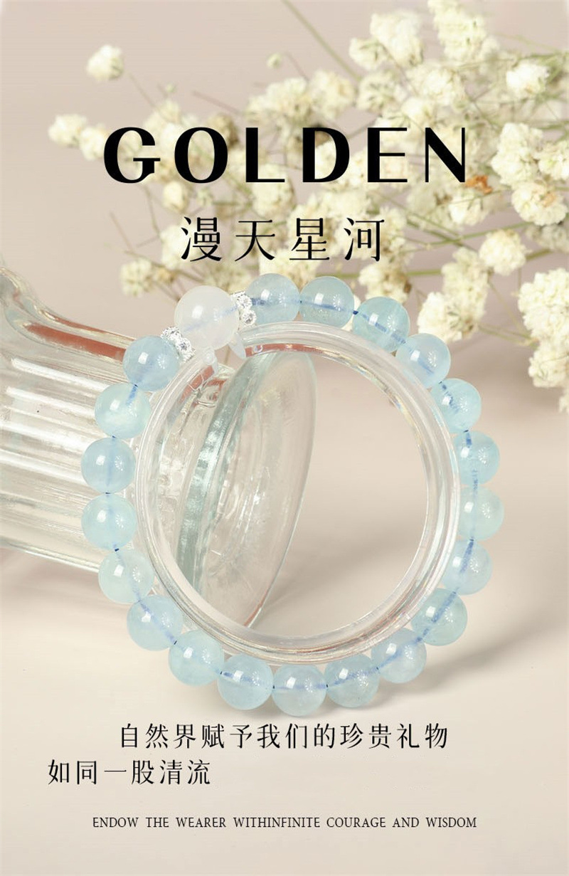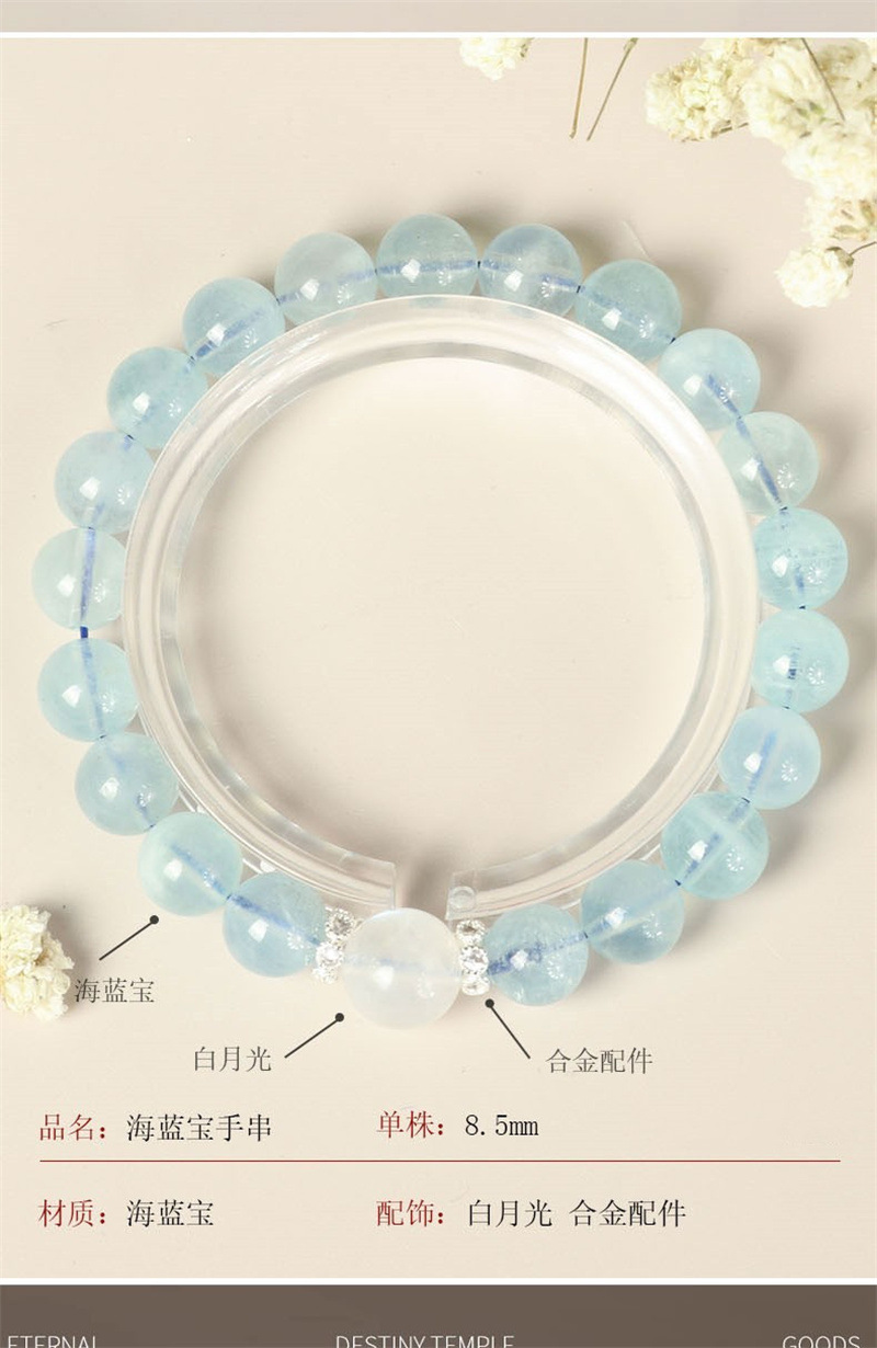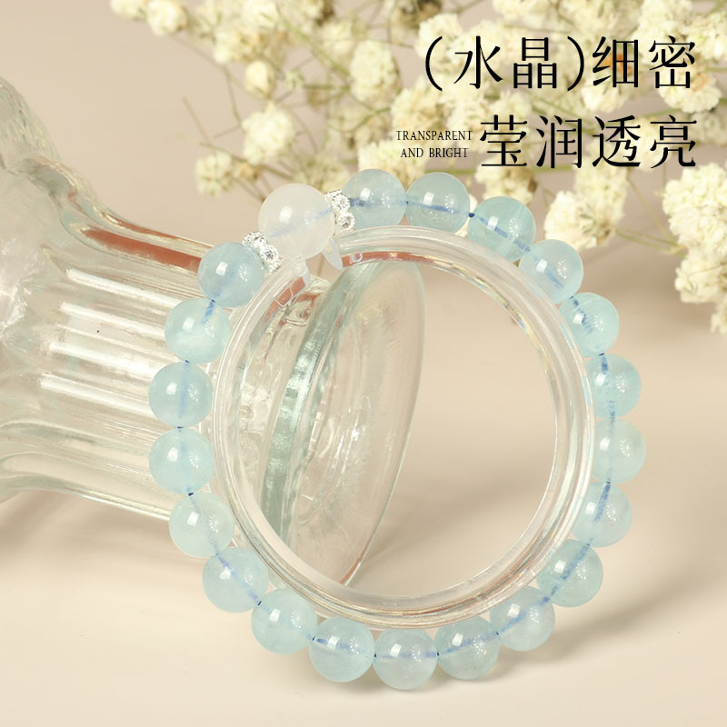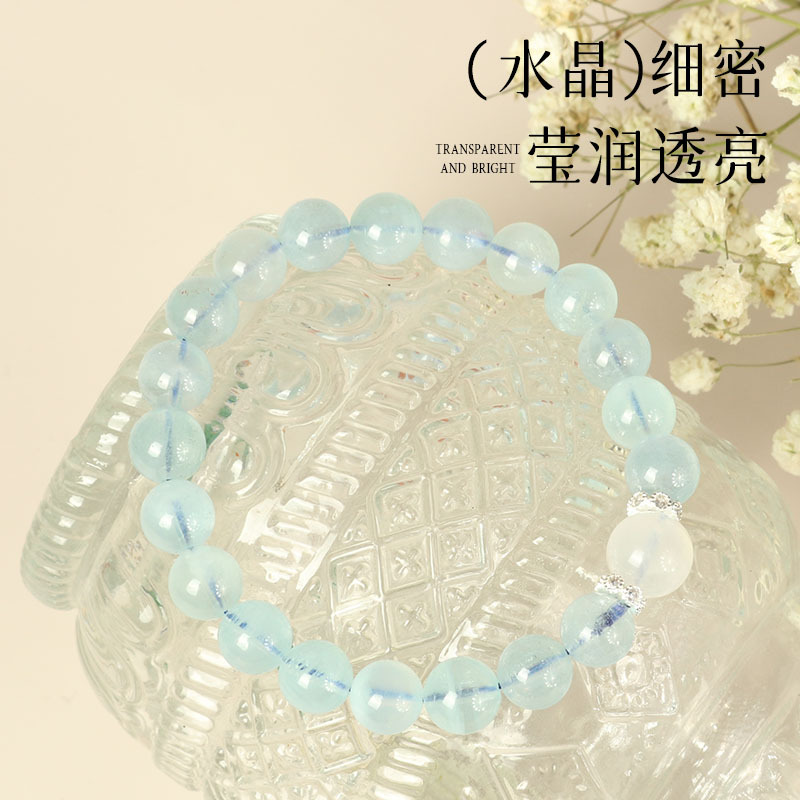 大有水晶天然海蓝宝手链少女感白月光串珠冰透蓝水晶手串闺蜜礼物 English | 投诉