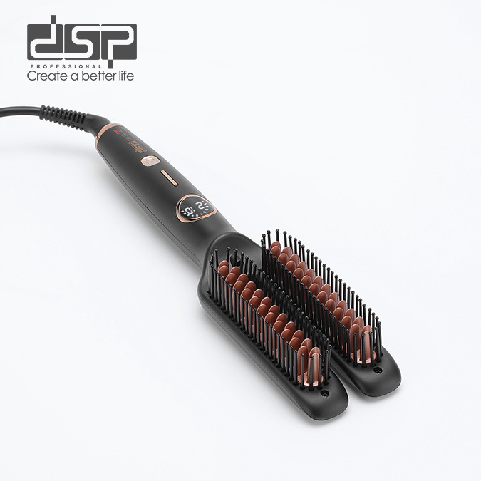 卖点:①铝梳呈瓜子片状(椭圆状),排列8字造型,让梳发更顺畅,能同时处理更多的头发;②中空立体结构直发梳,两排梳能达到二次加热梳发效果,直发定型效果更好;③防烫梳齿设计;④快速加热;⑤LED数显;⑥5档温度调节,满足不同发质需求;⑦圆润梳齿不卡发不扯发;⑧喷漆外壳