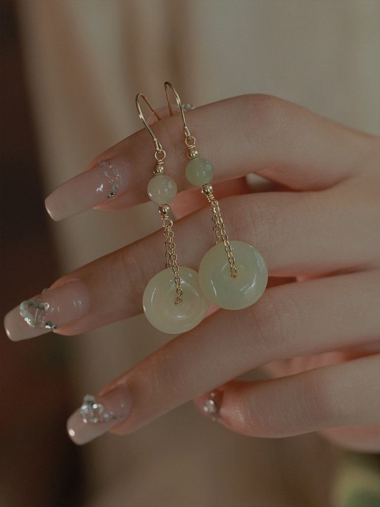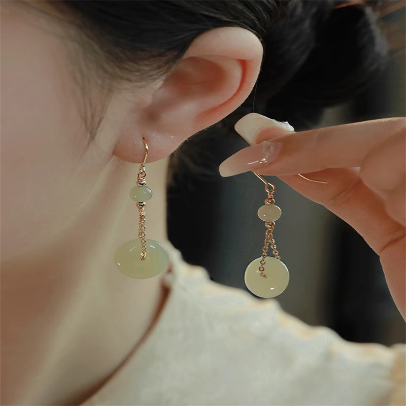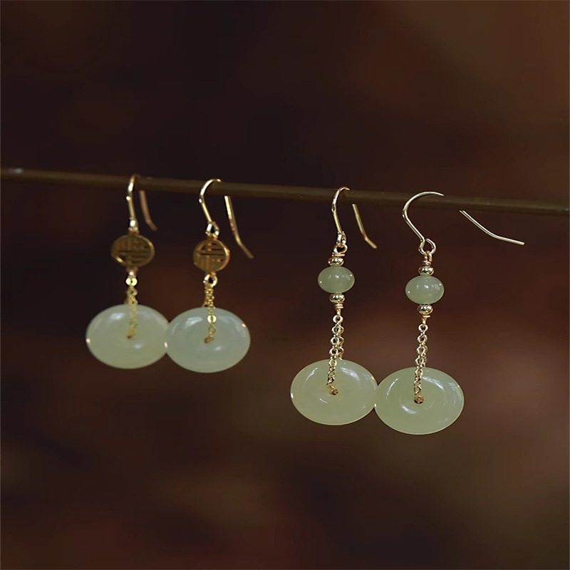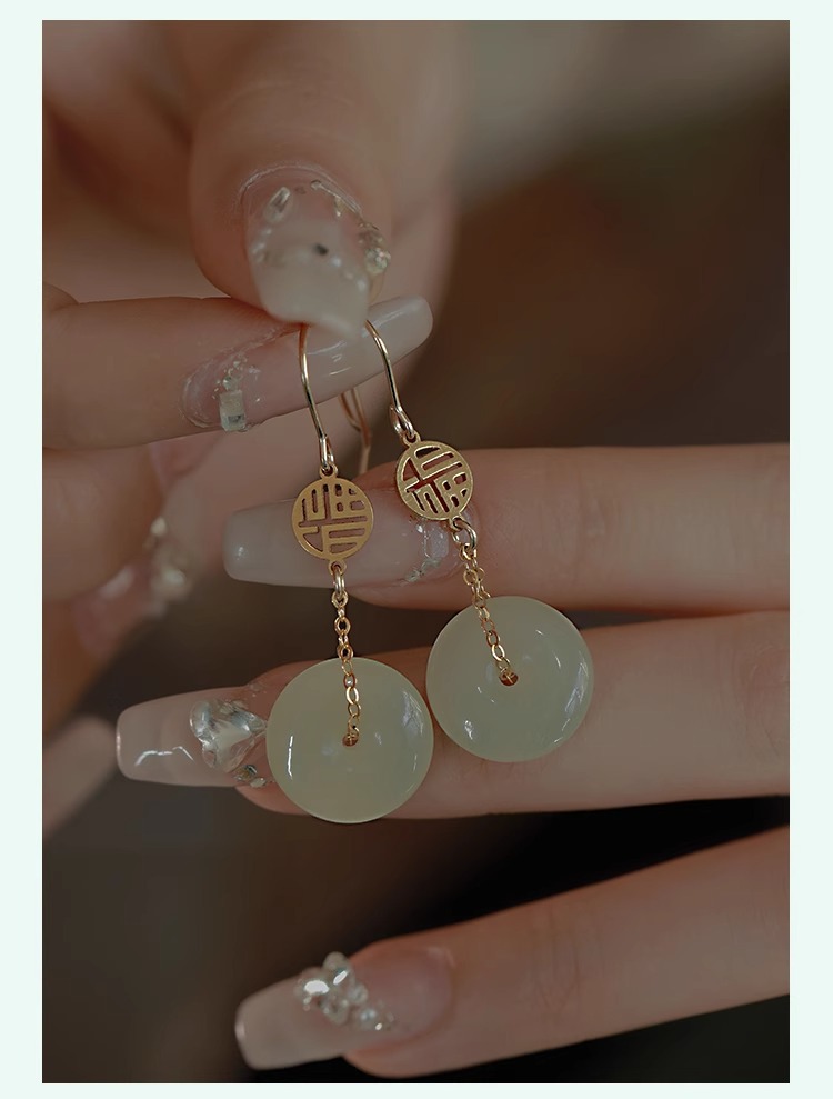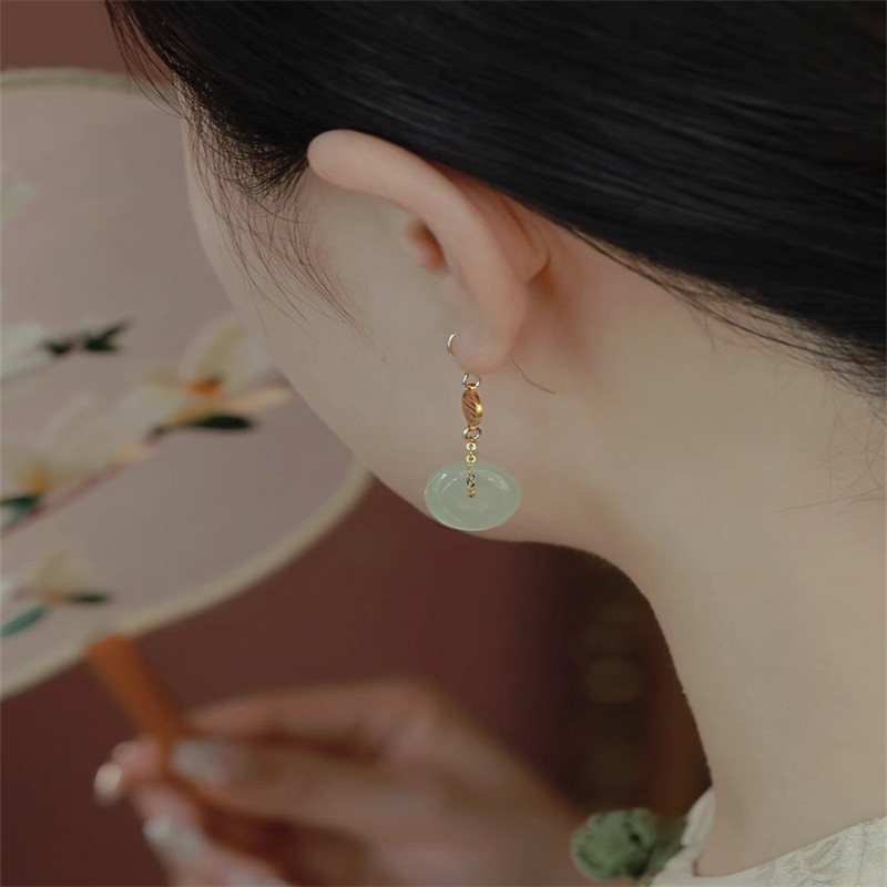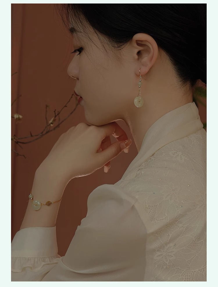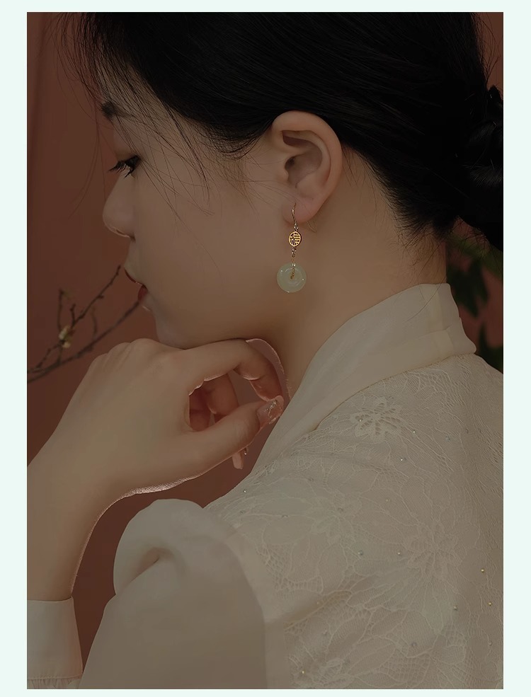 和田玉耳环女玉石耳钉小众设计感复古风气质中古耳饰送闺蜜礼物 English | 投诉