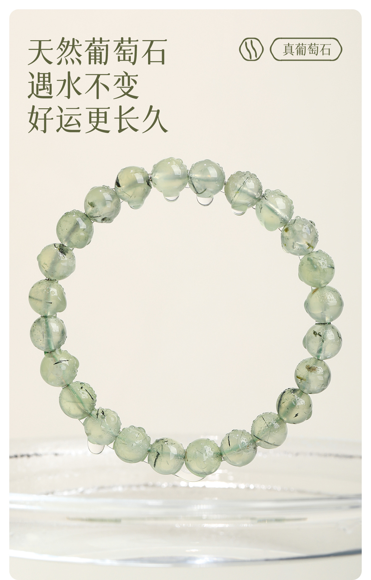 | 天然葡萄石手链【8mm】赠送鉴定证书 | ¥3300 | 11200件可售 |