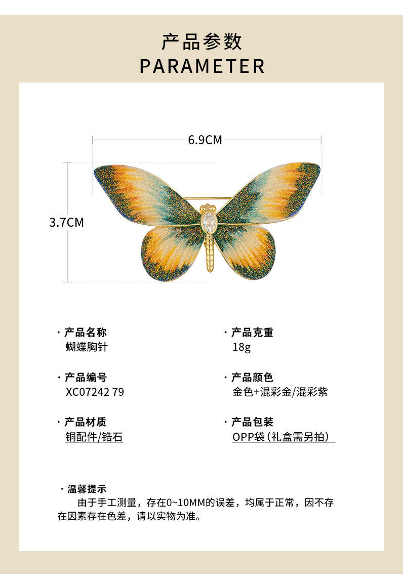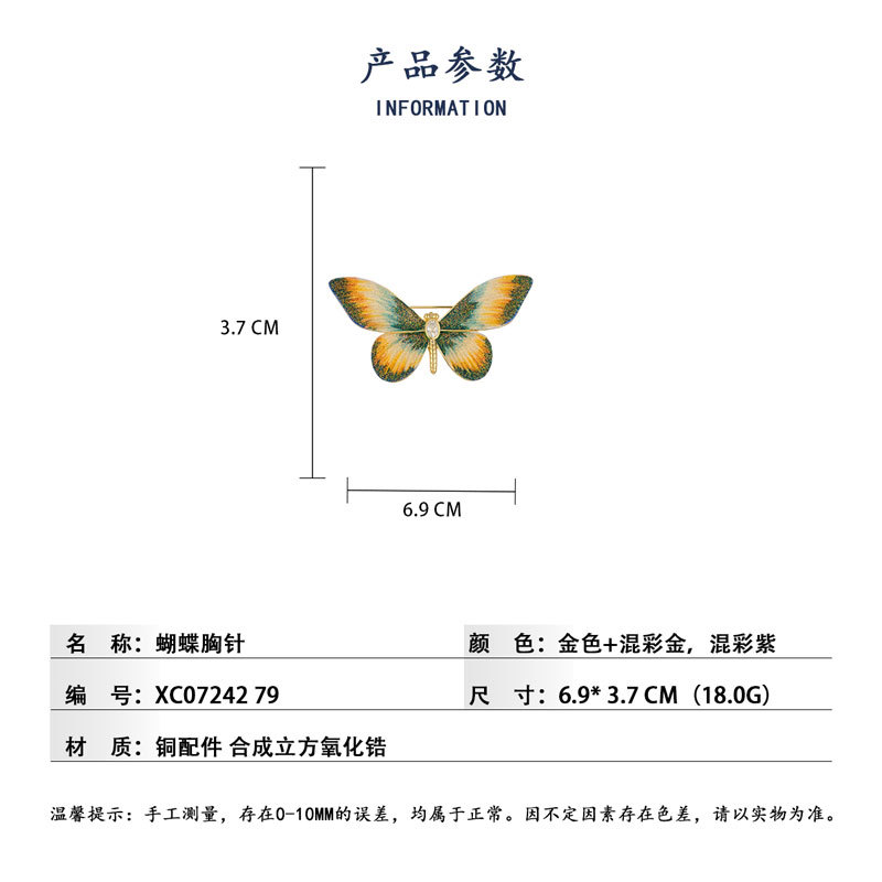 新款炫彩灵动渐变蝴蝶胸针时尚百搭高级感昆虫胸花女秋冬衣饰别针 投诉