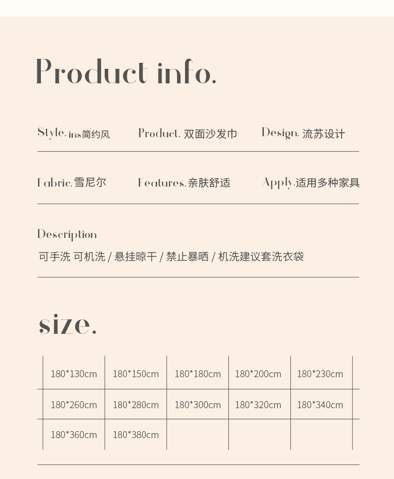 | 180*350cm(适用三人沙发) | ¥6460 | 999件可售 |