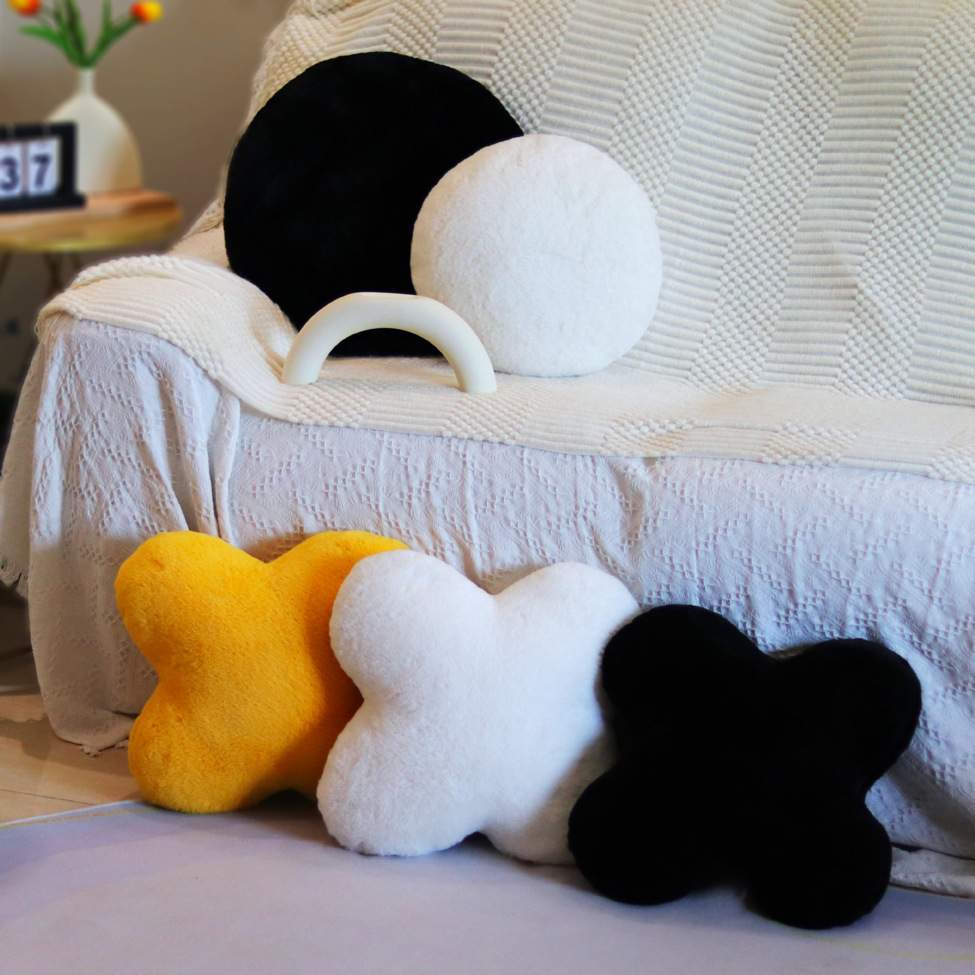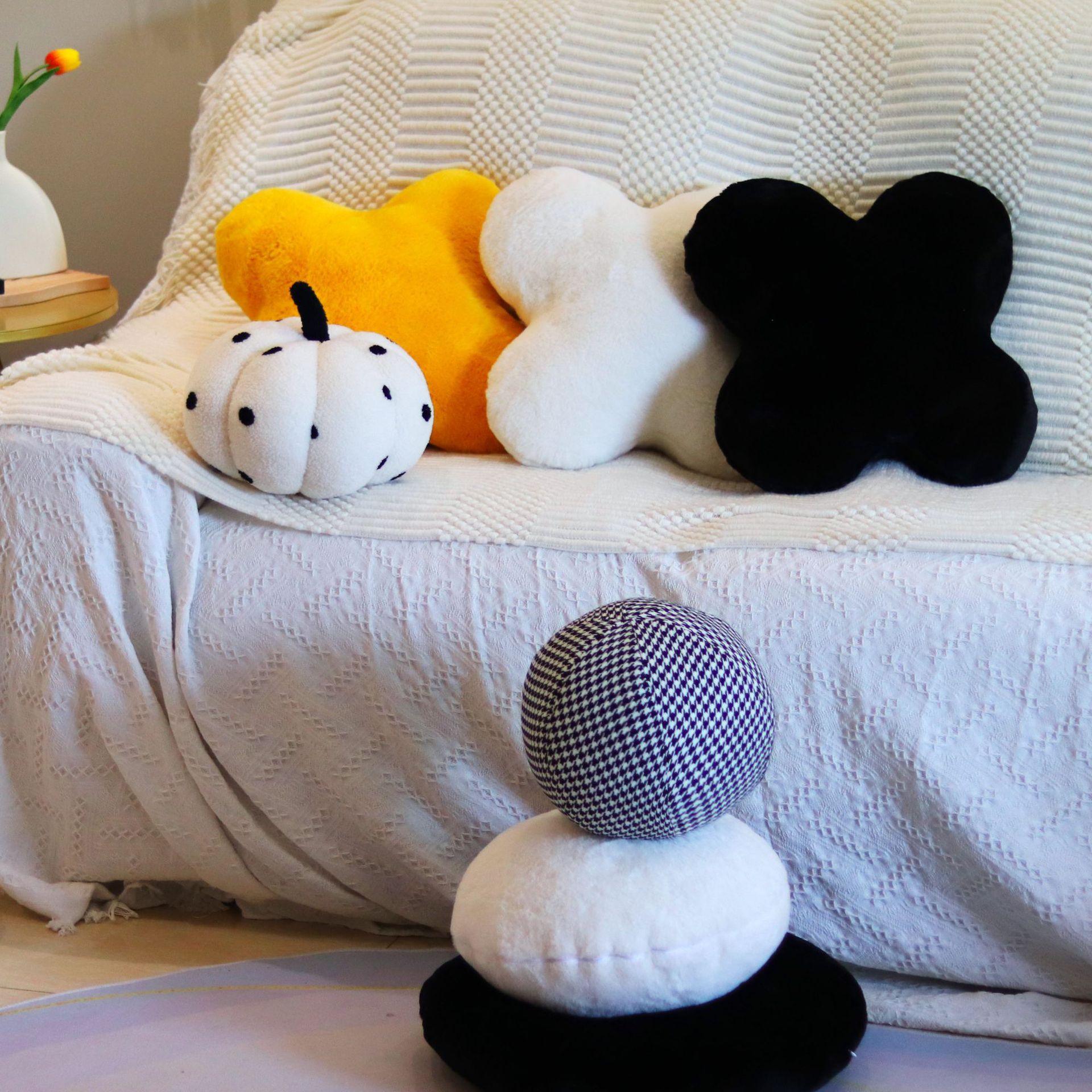 填充物: 聚酯纤维 外套材质: 毛绒 产品类别: 靠垫套/抱枕套 风格: 现代简约 织造工艺: 其他 图案: 纯色 颜色: 姜黄,黑,白,异性,圆形白,圆形黑,千鸟 尺寸: 含芯 是否有版权或专利: 否