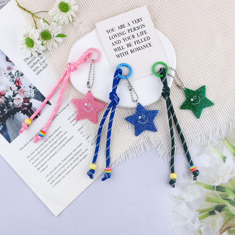 创意新款miu风亚克力彩色亮片星星尼龙挂绳手机挂链钥匙扣包挂件 English | 投诉