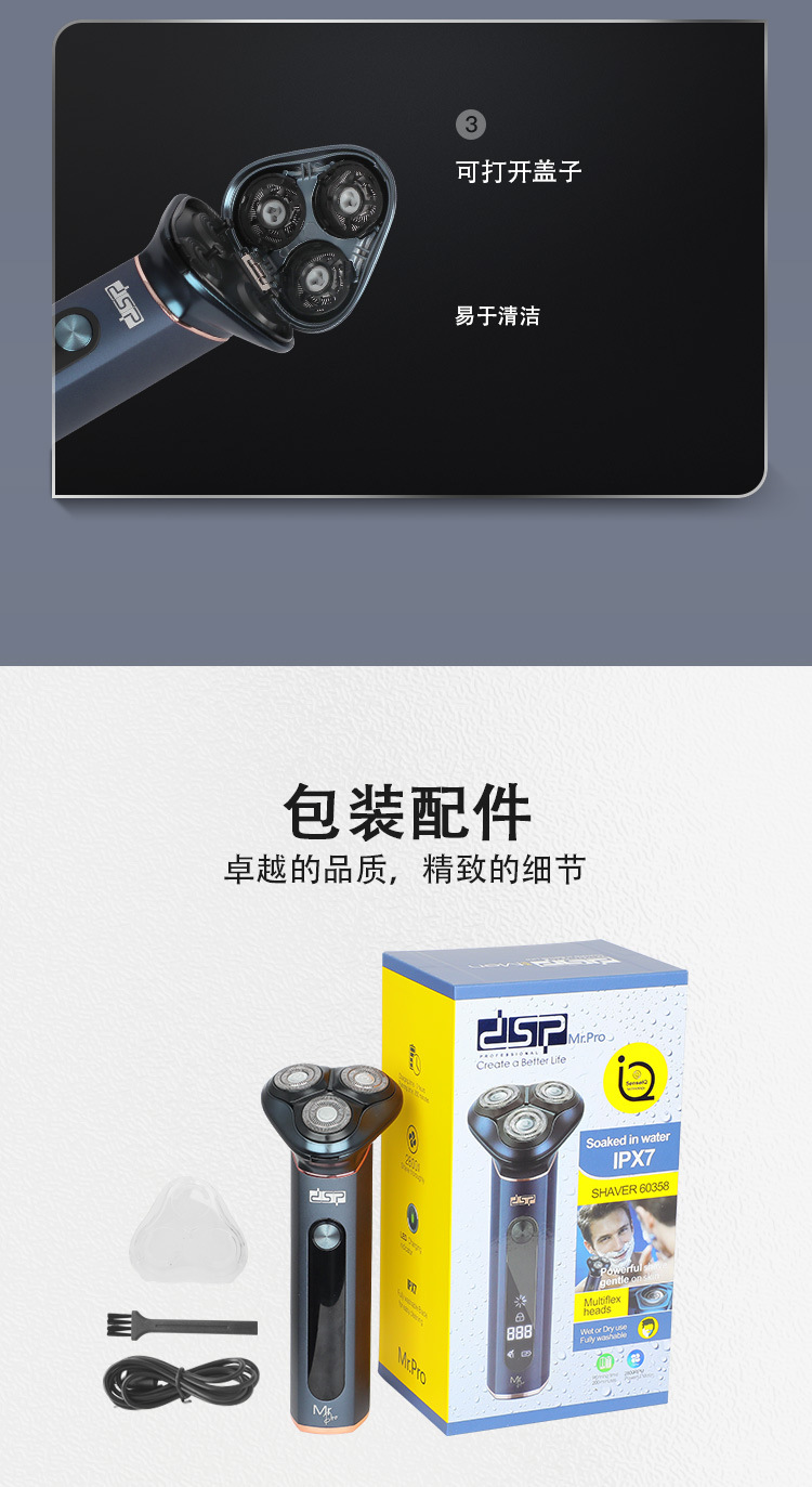 配件:Type-c线,一个刀头保护罩和一个刀头清洁刷