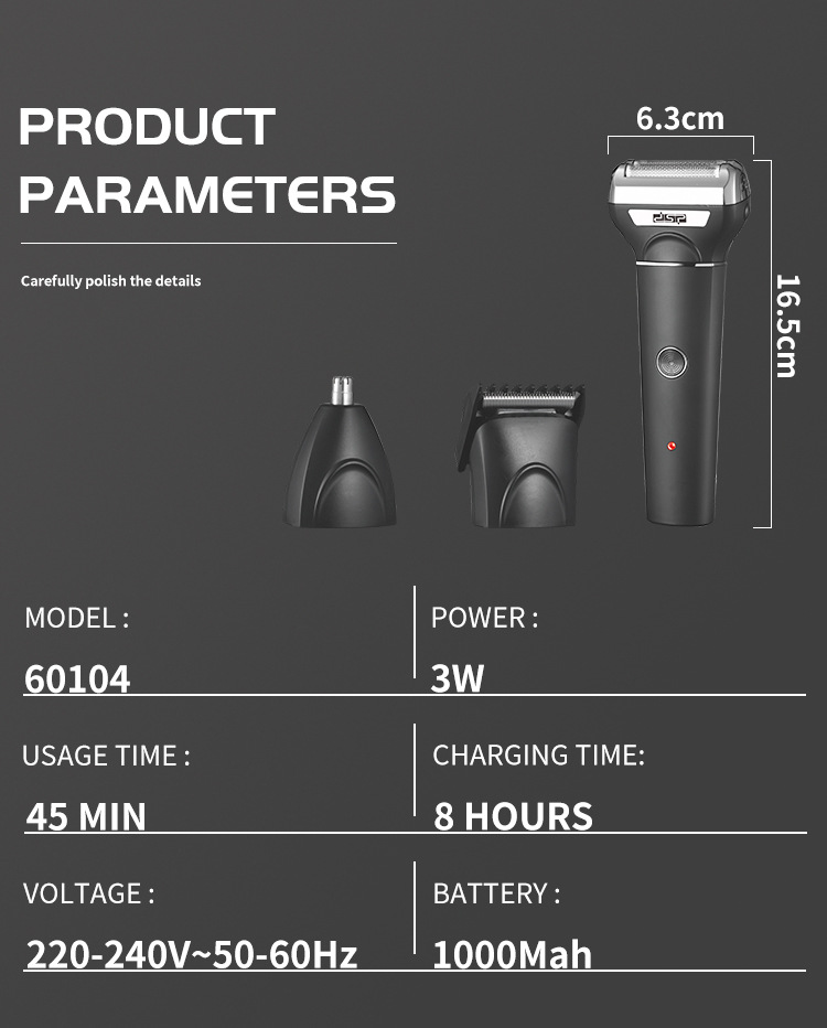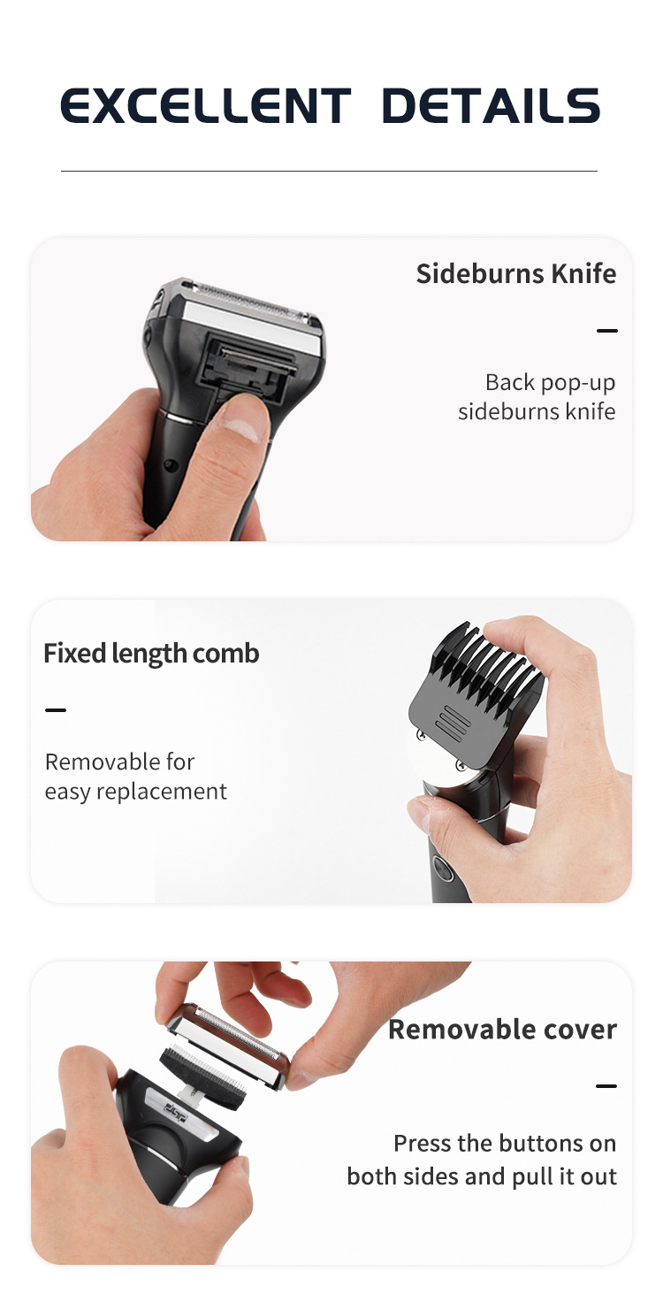 配件:剃须刀头,理发剪刀头,鼻毛修剪器,油瓶,毛刷