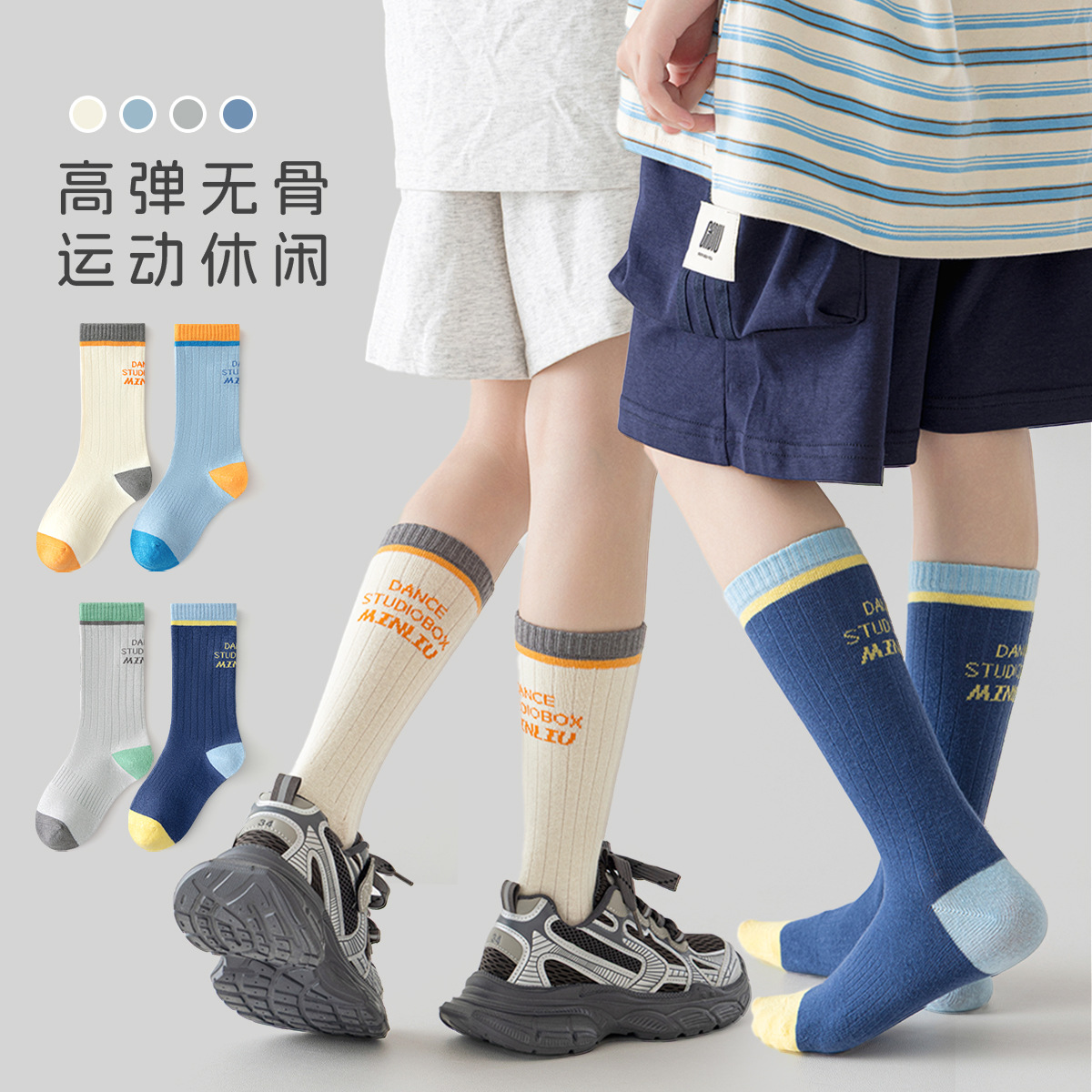 儿童小腿袜春秋长筒袜高橡筋运动袜精梳棉高筒袜男童女童无骨潮袜