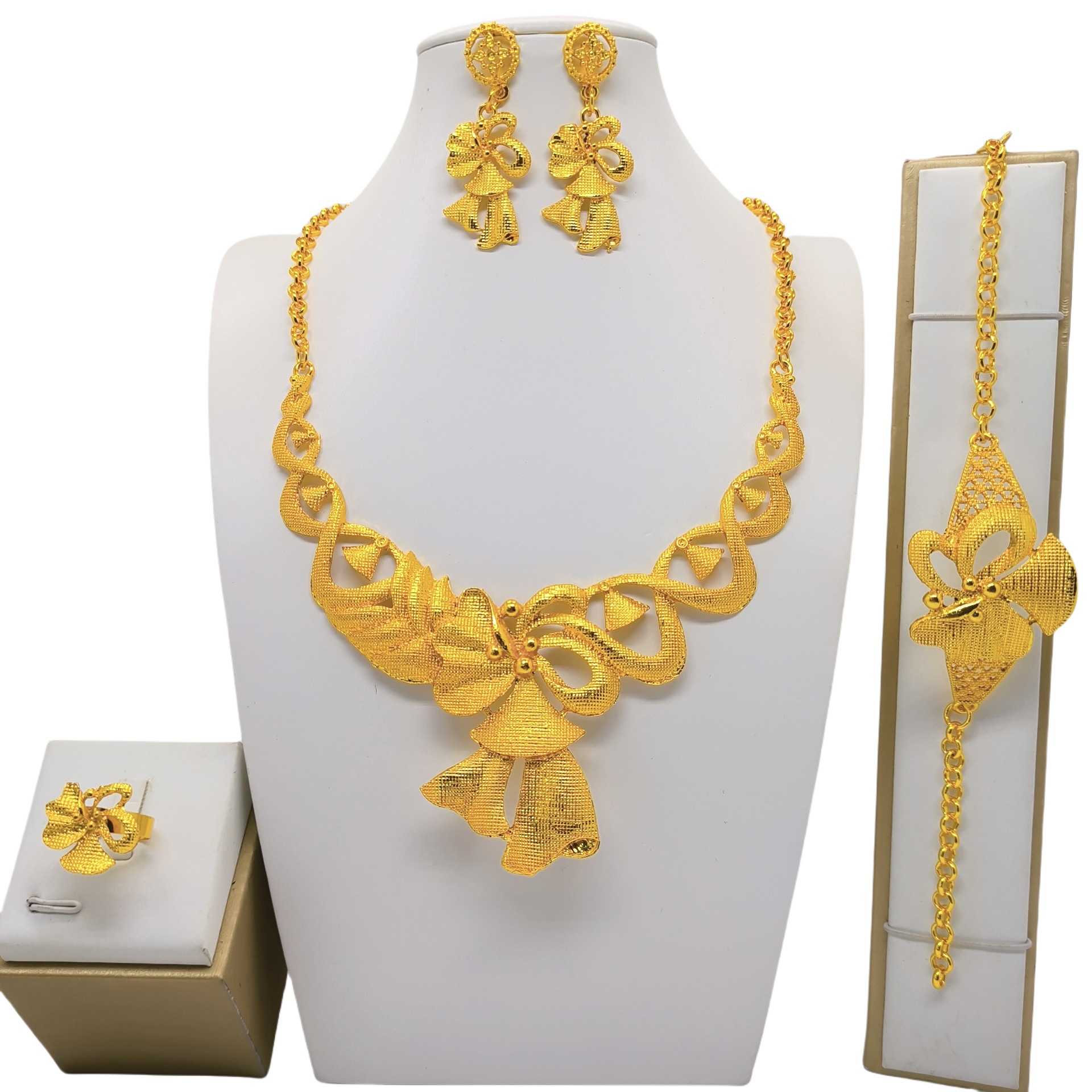 中东饰品爆款迪拜沙特首饰新娘结婚项链耳环戒指手链四件套饰品