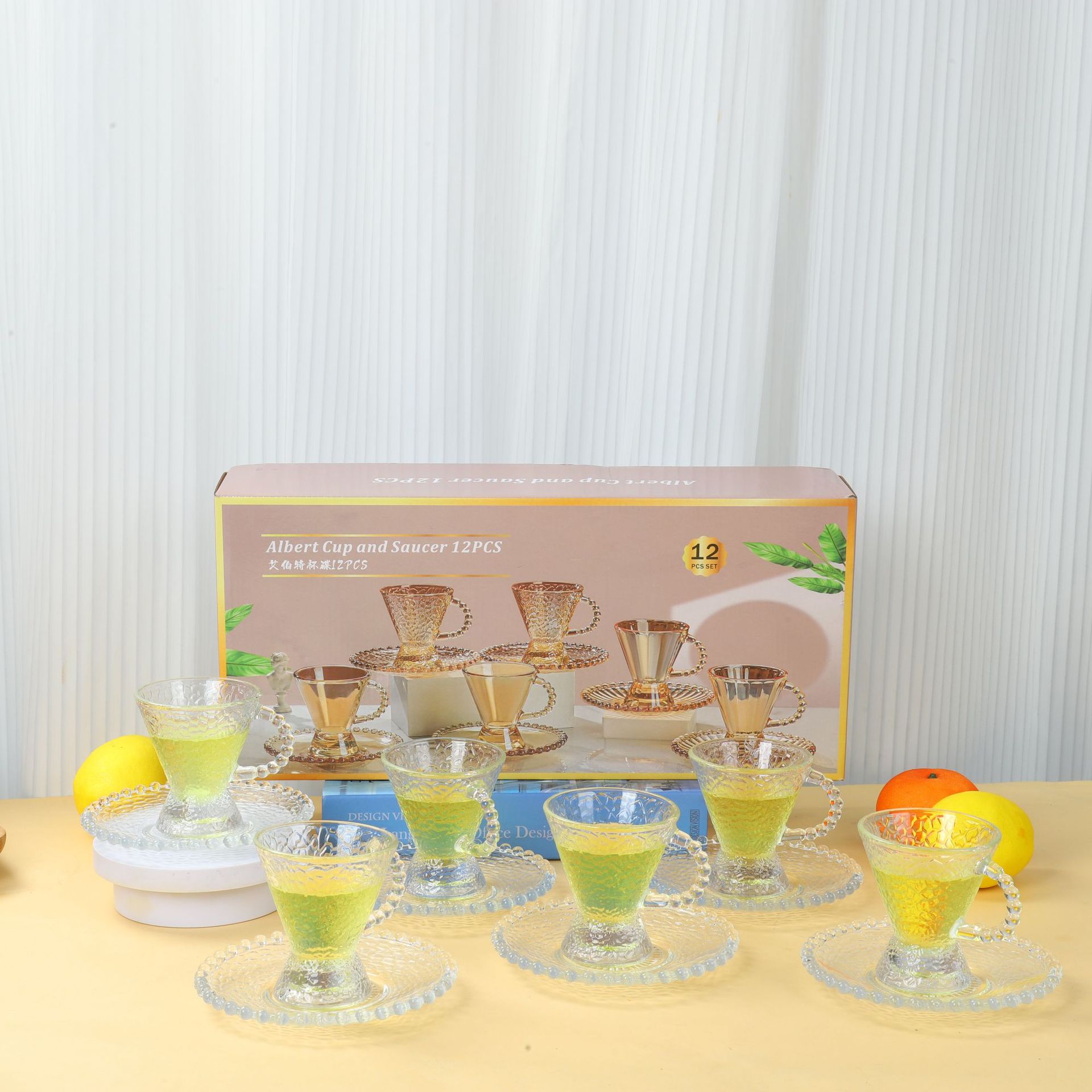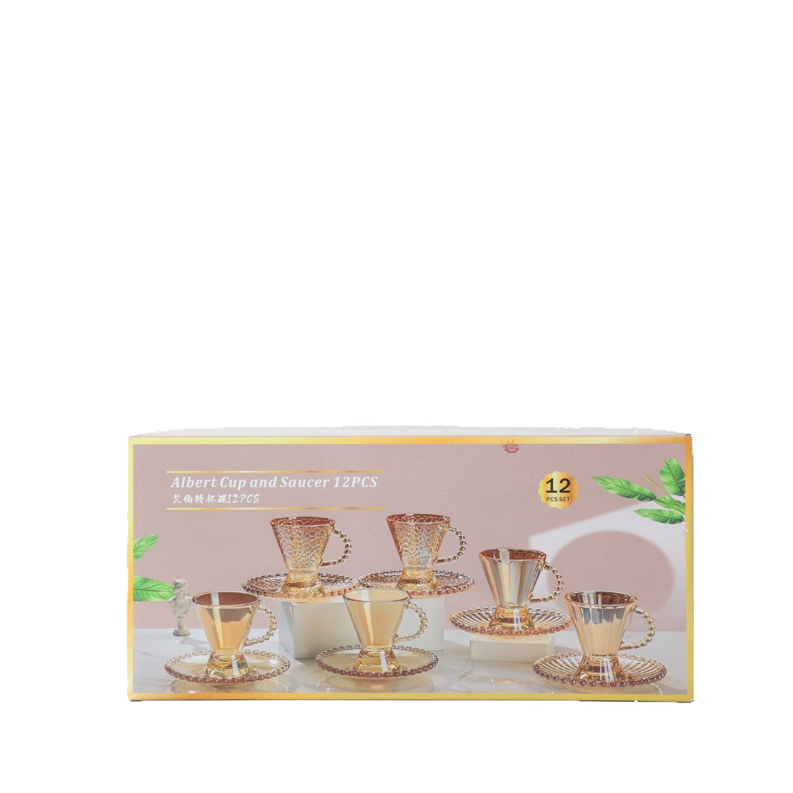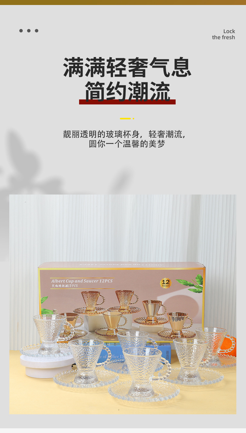 新款艾伯特玻璃杯碟十二件套家用咖啡杯碟套装活动开业礼品随手礼