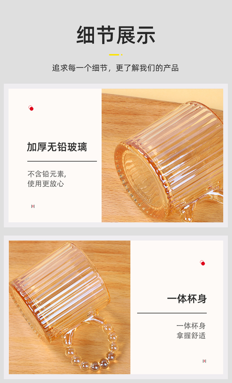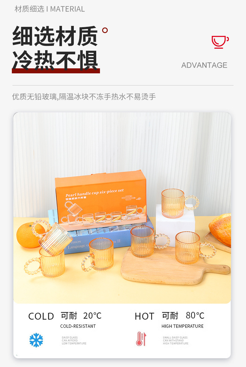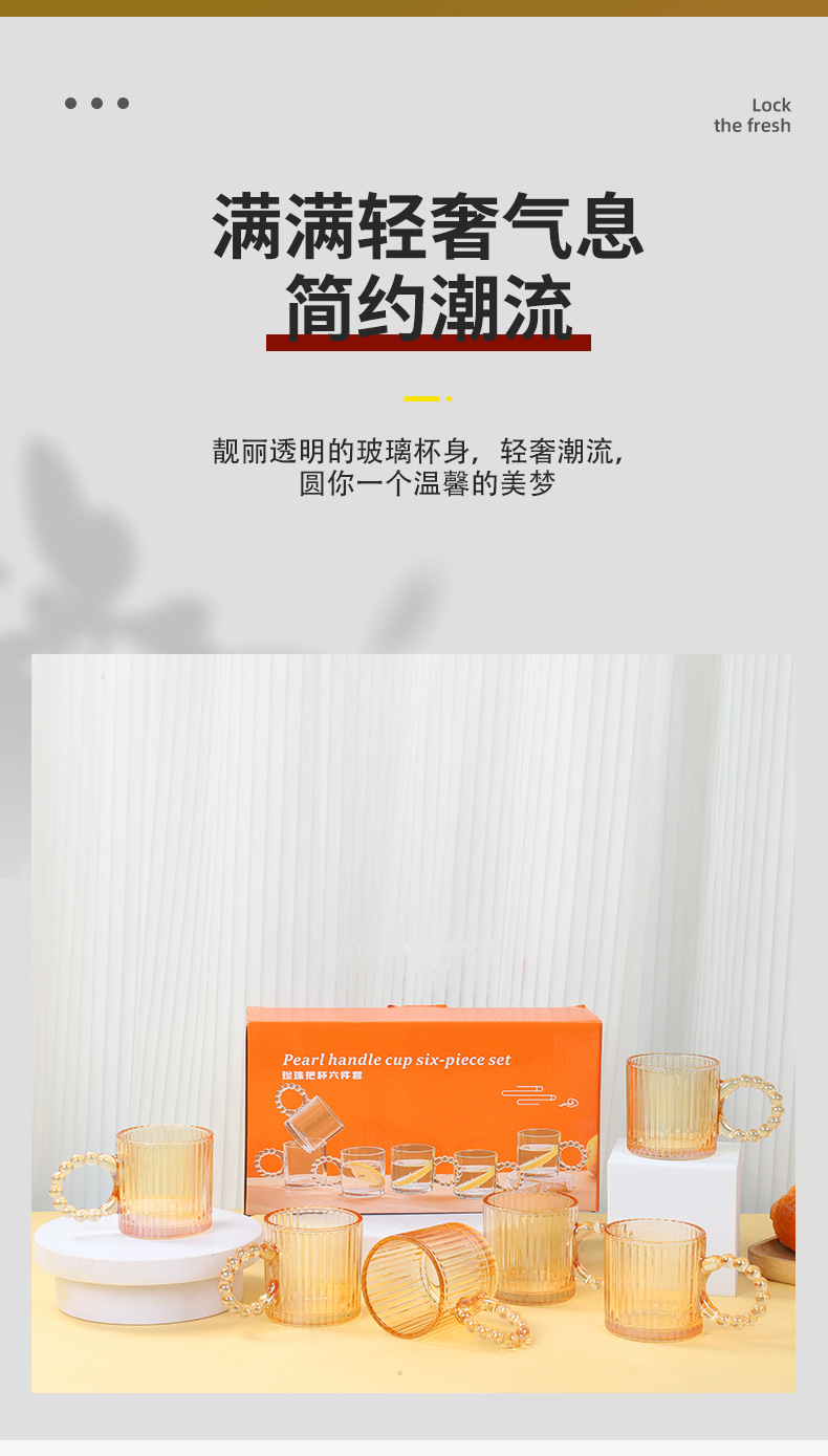 新款珍珠把杯六件套家用咖啡杯水杯套装活动开业礼品随手礼伴手礼