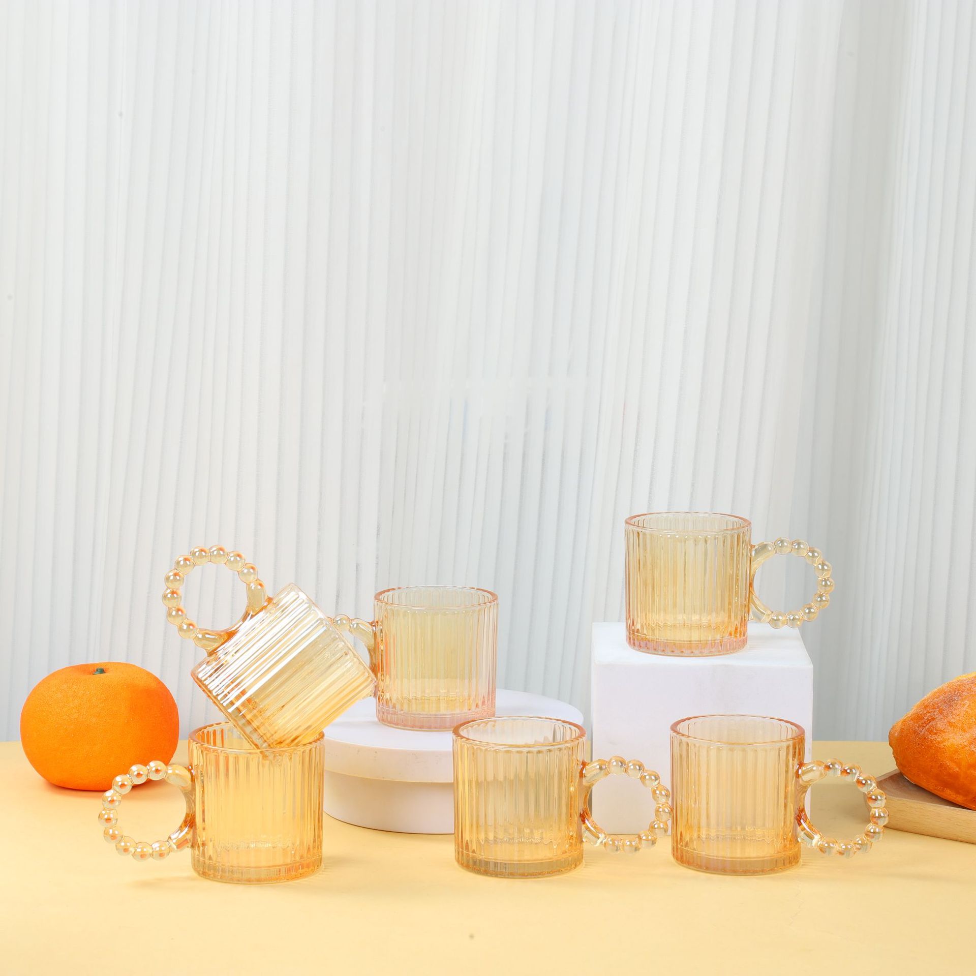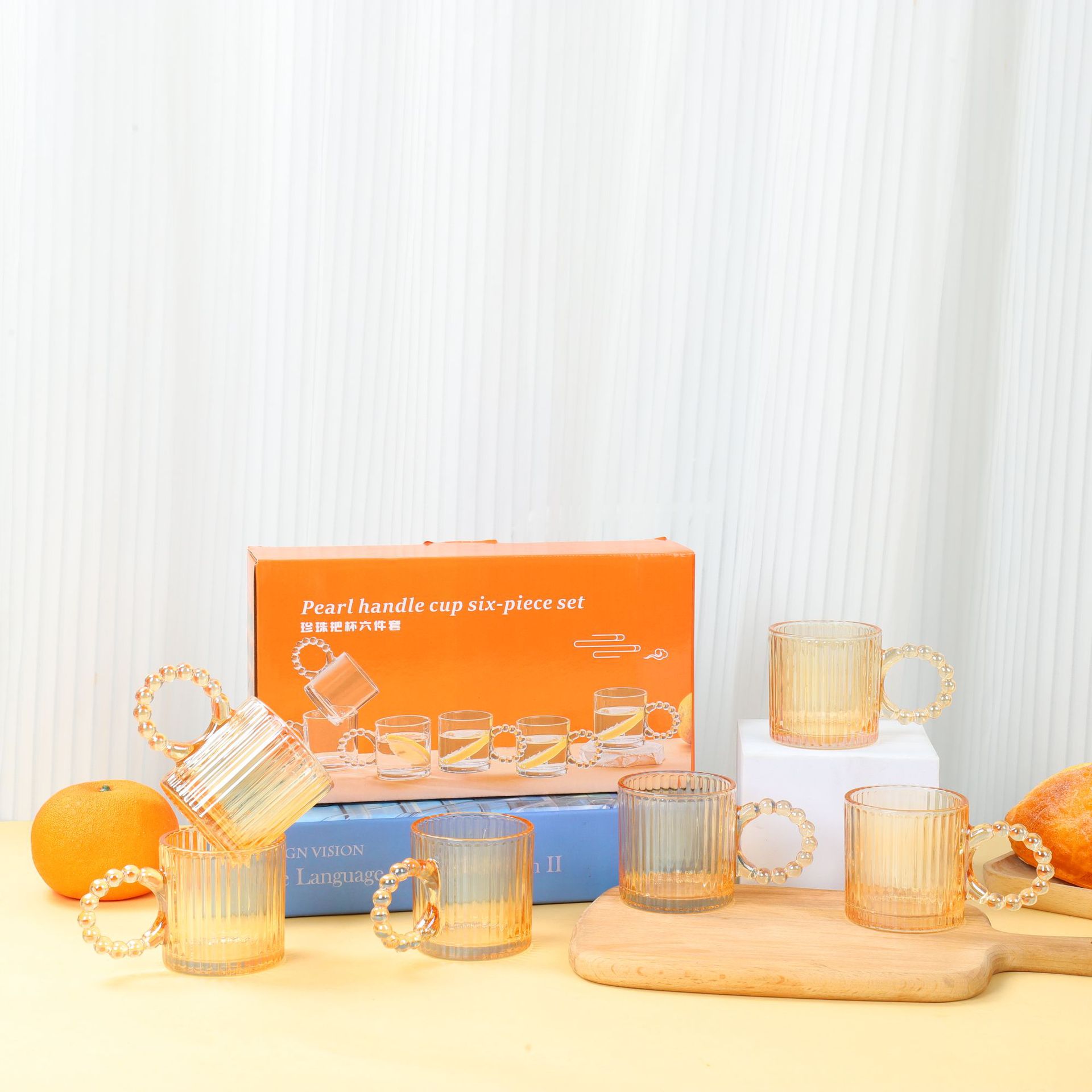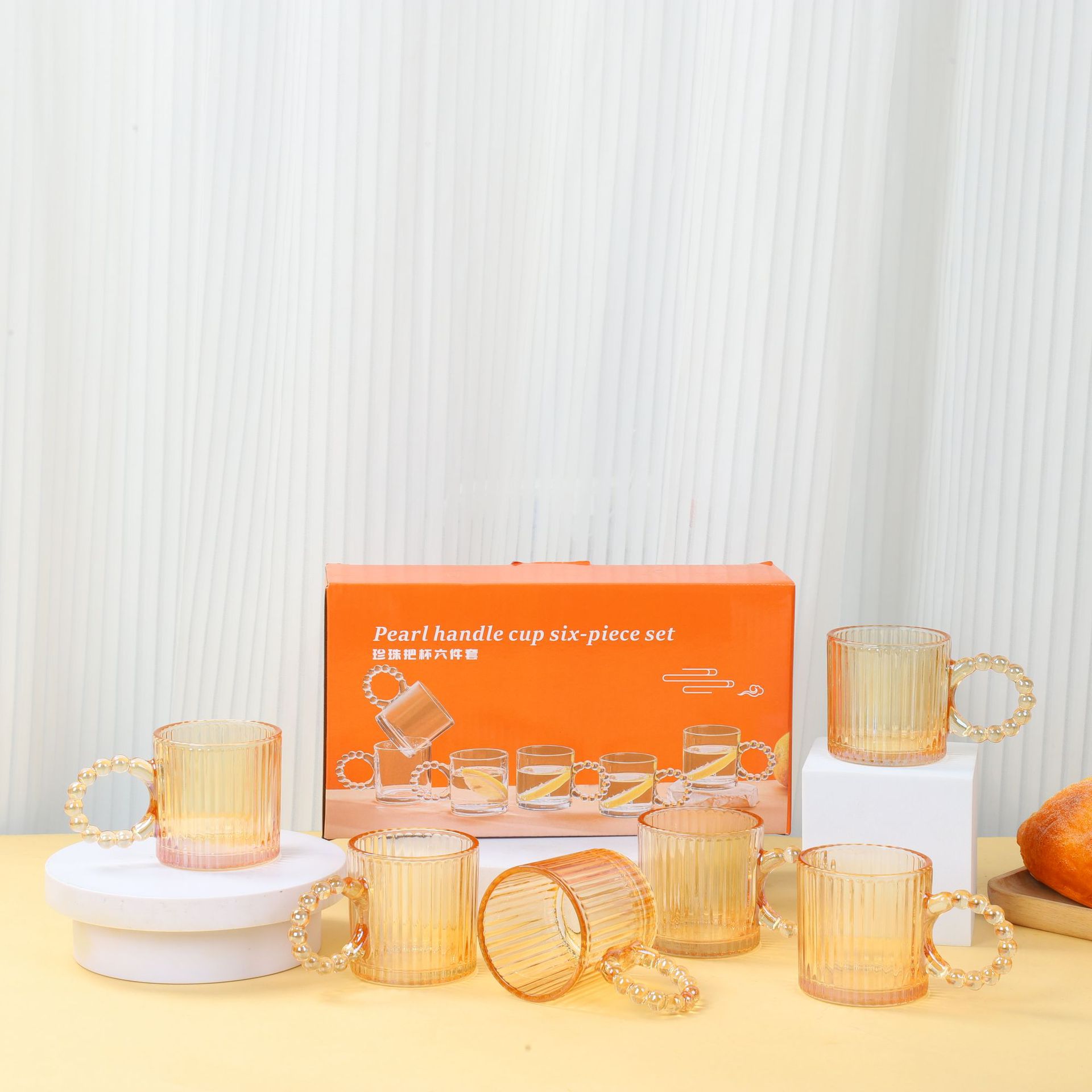新款珍珠把杯六件套家用咖啡杯水杯套装活动开业礼品随手礼伴手礼