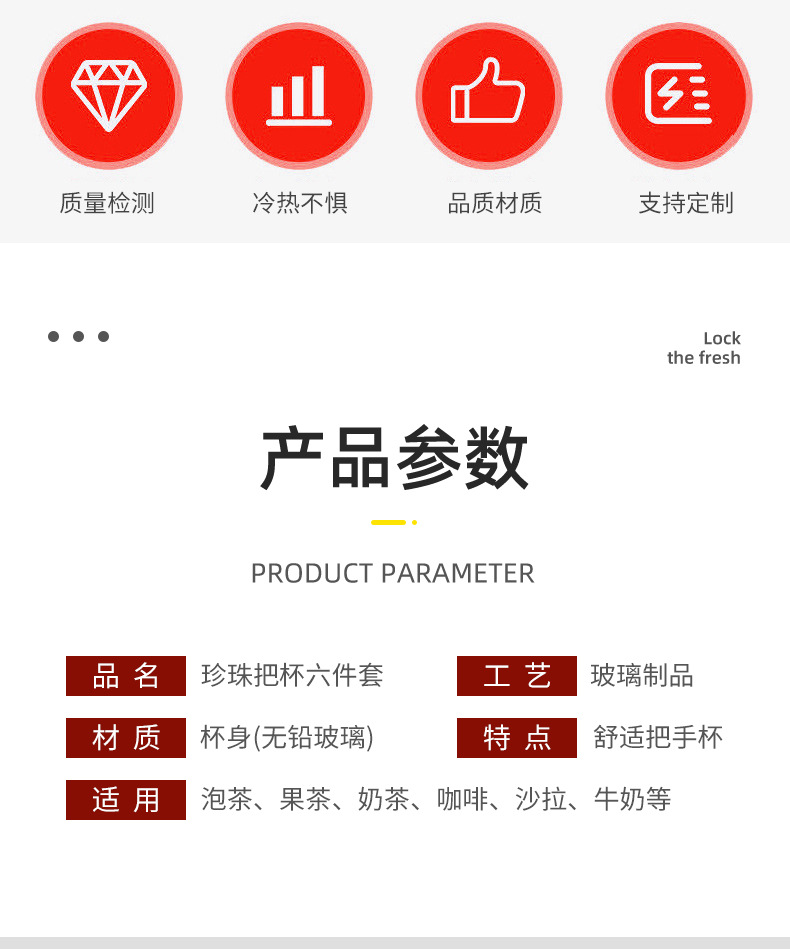 新款珍珠把杯六件套家用咖啡杯水杯套装活动开业礼品随手礼伴手礼 投诉