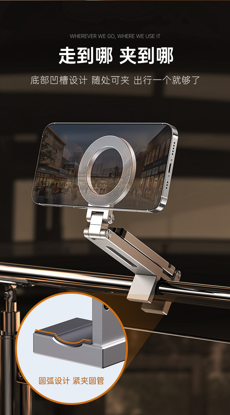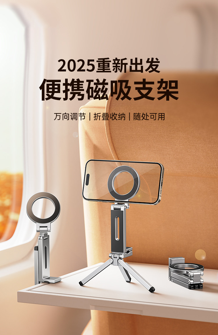 2025新款手机支架调节磁吸便携折叠旅行直播自拍支架多功能夹式架 English | 投诉