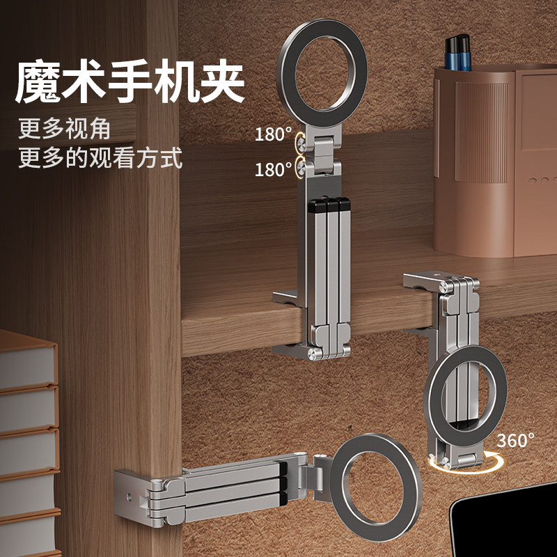 2025新款手机支架调节磁吸便携折叠旅行直播自拍支架多功能夹式架
