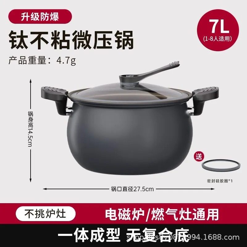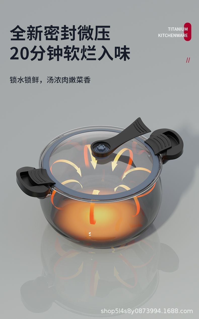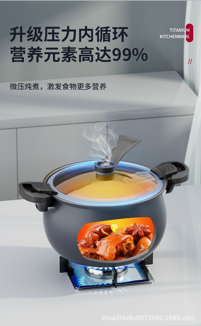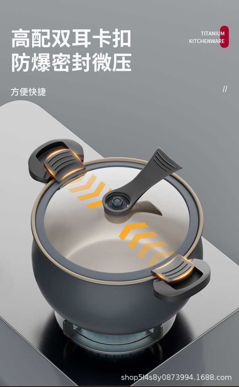 辣小娘同款微压锅钛不沾煮粥加厚双耳压力锅家用电磁炉微压炖煮锅