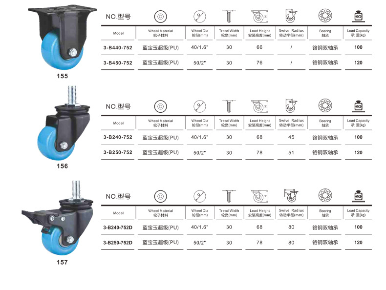| 1. 6寸平底刹车蓝宝玉PU轮 | ¥949 | 9998个可售 |