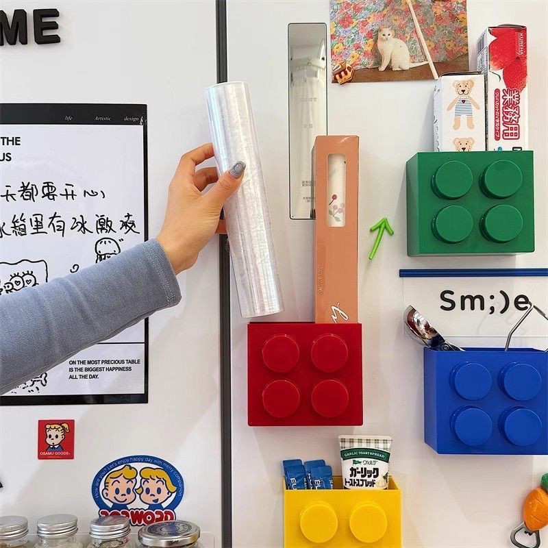 磁吸置物架可爱积木磁吸收纳盒冰箱装饰贴保鲜膜置物架冰箱贴壁挂