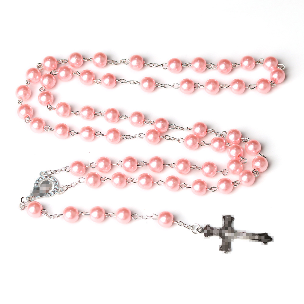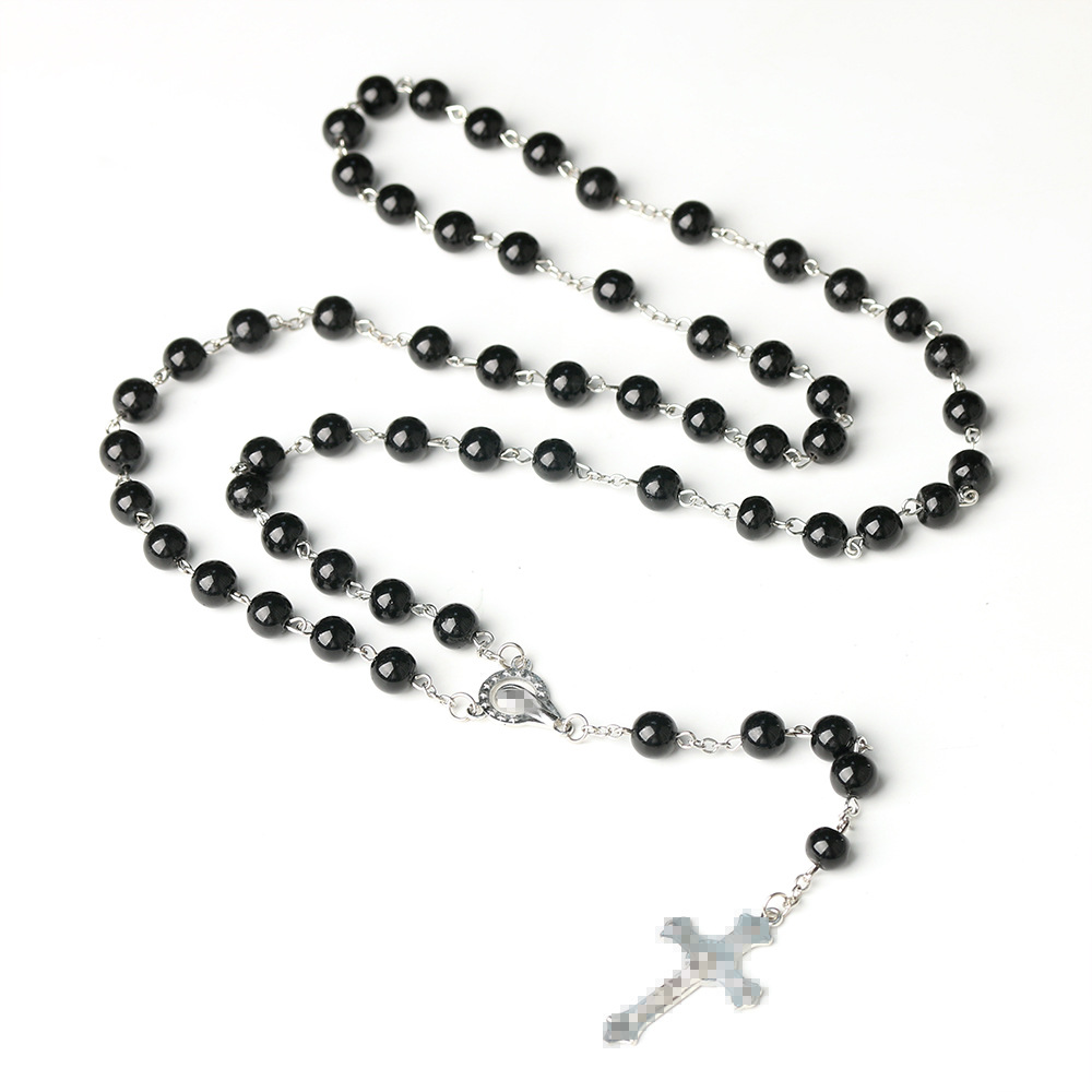 玻璃珍珠念珠十字架项链8mm跨境饰品十字架Catholic Rosary 批发 English | 投诉