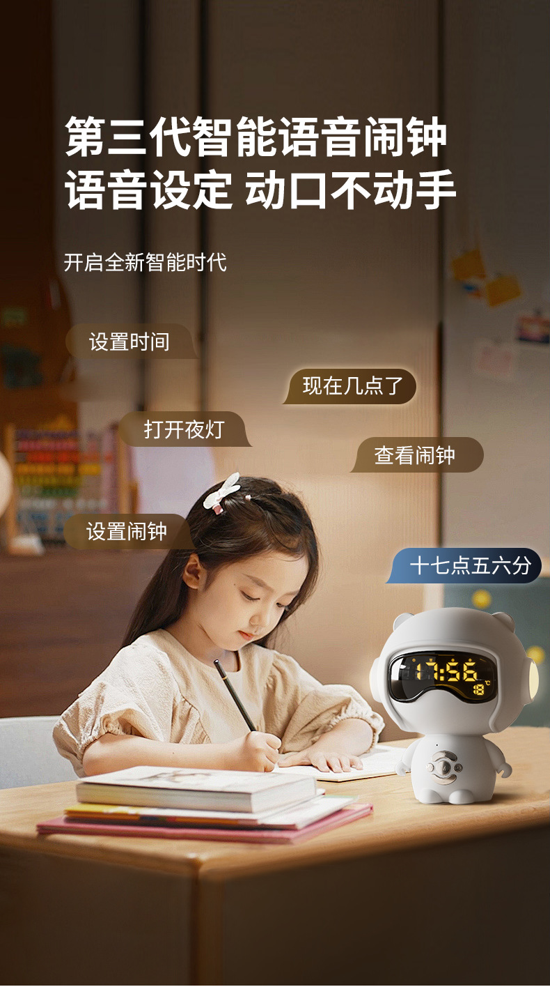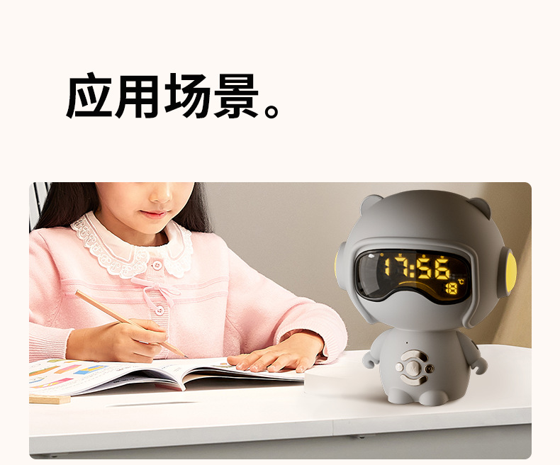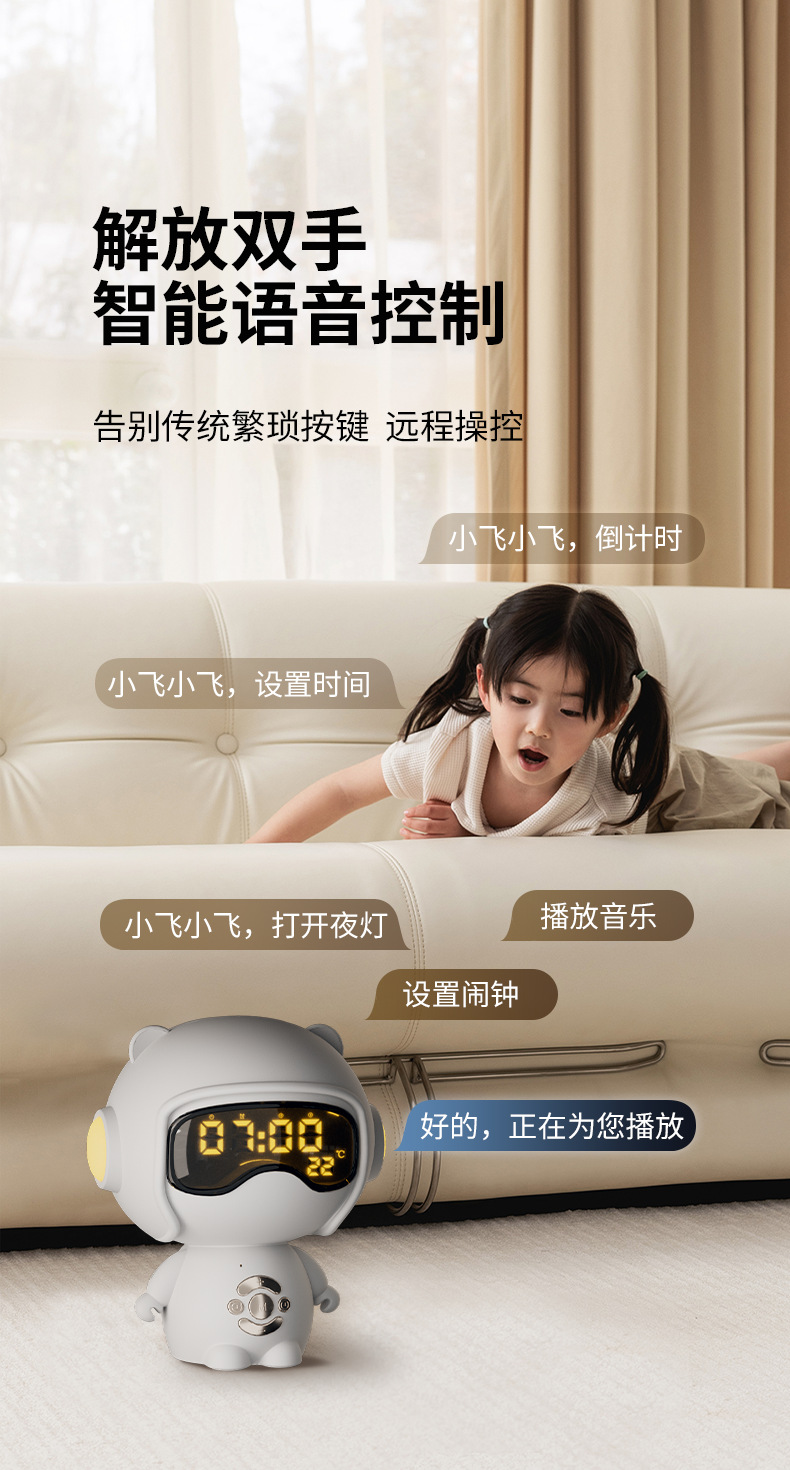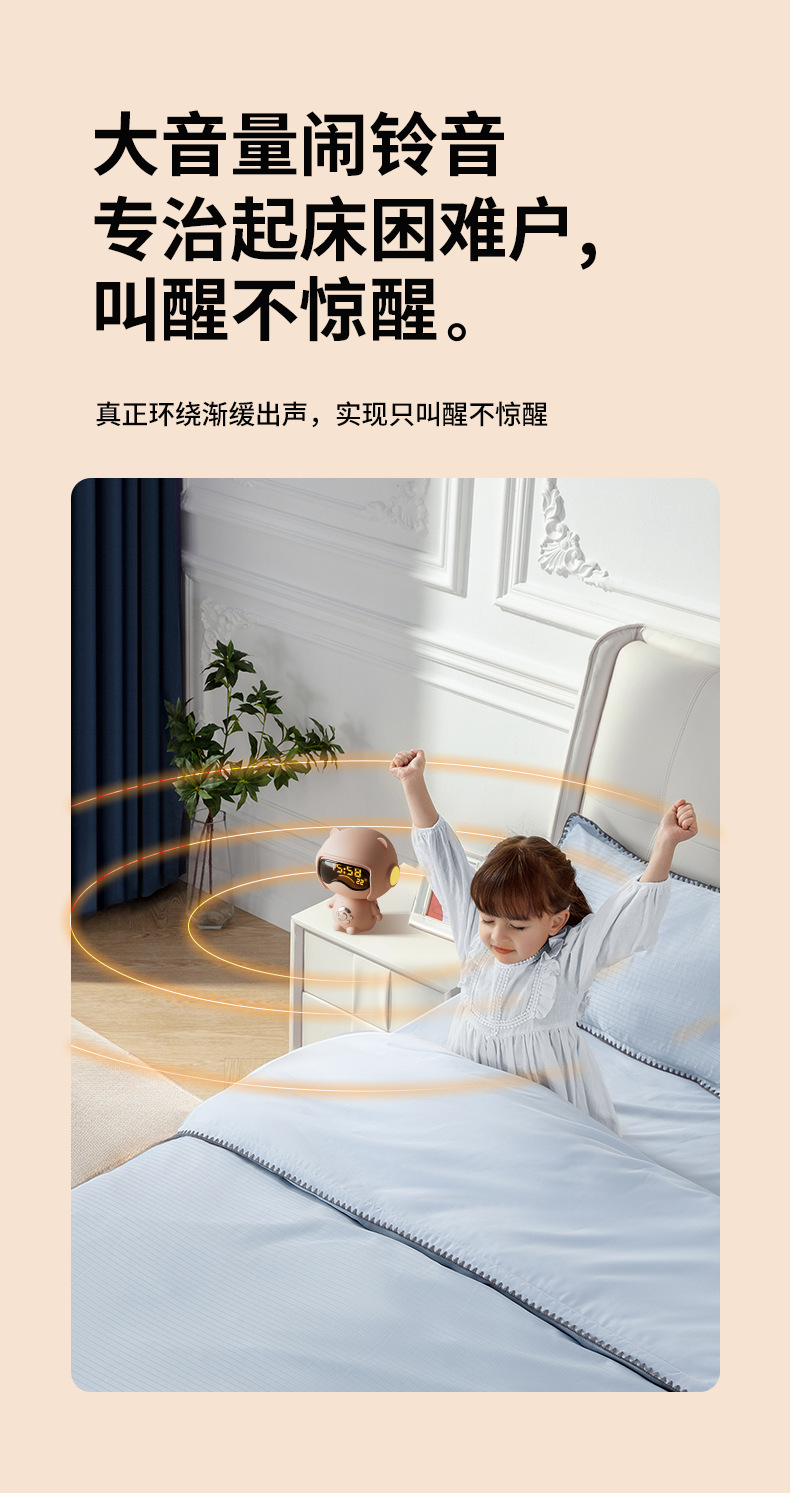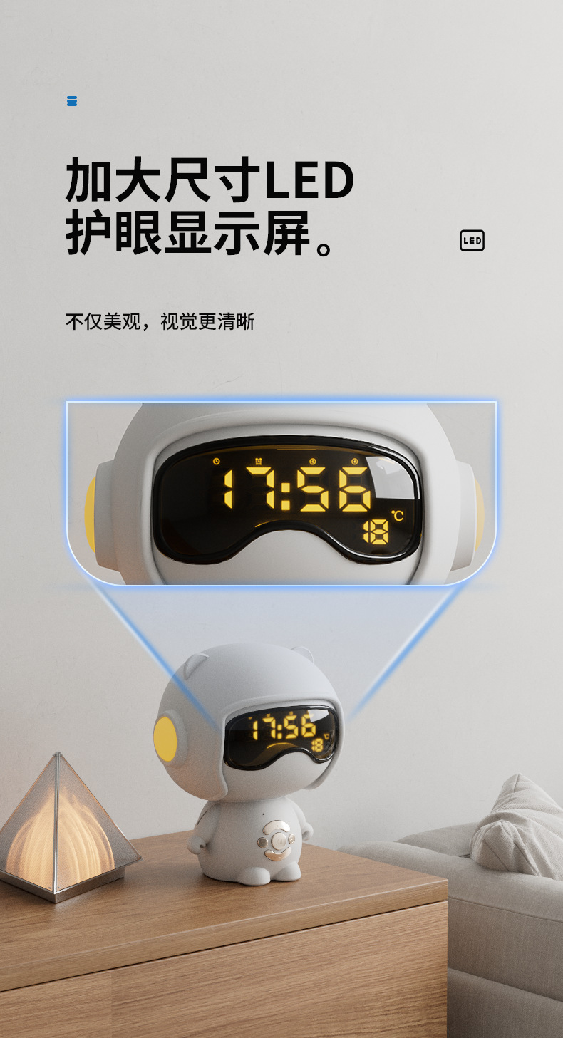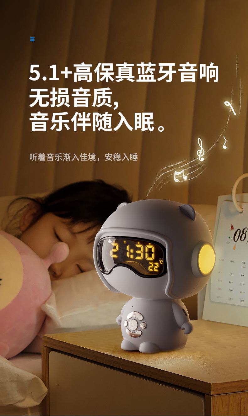 儿童时钟语音设置闹钟TF卡播放小夜灯桌面音箱创意礼品蓝牙小音响