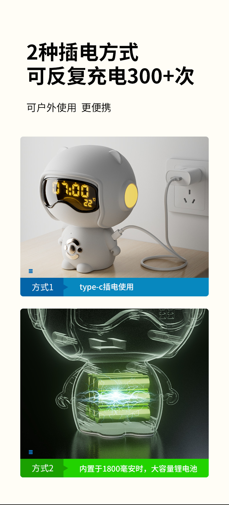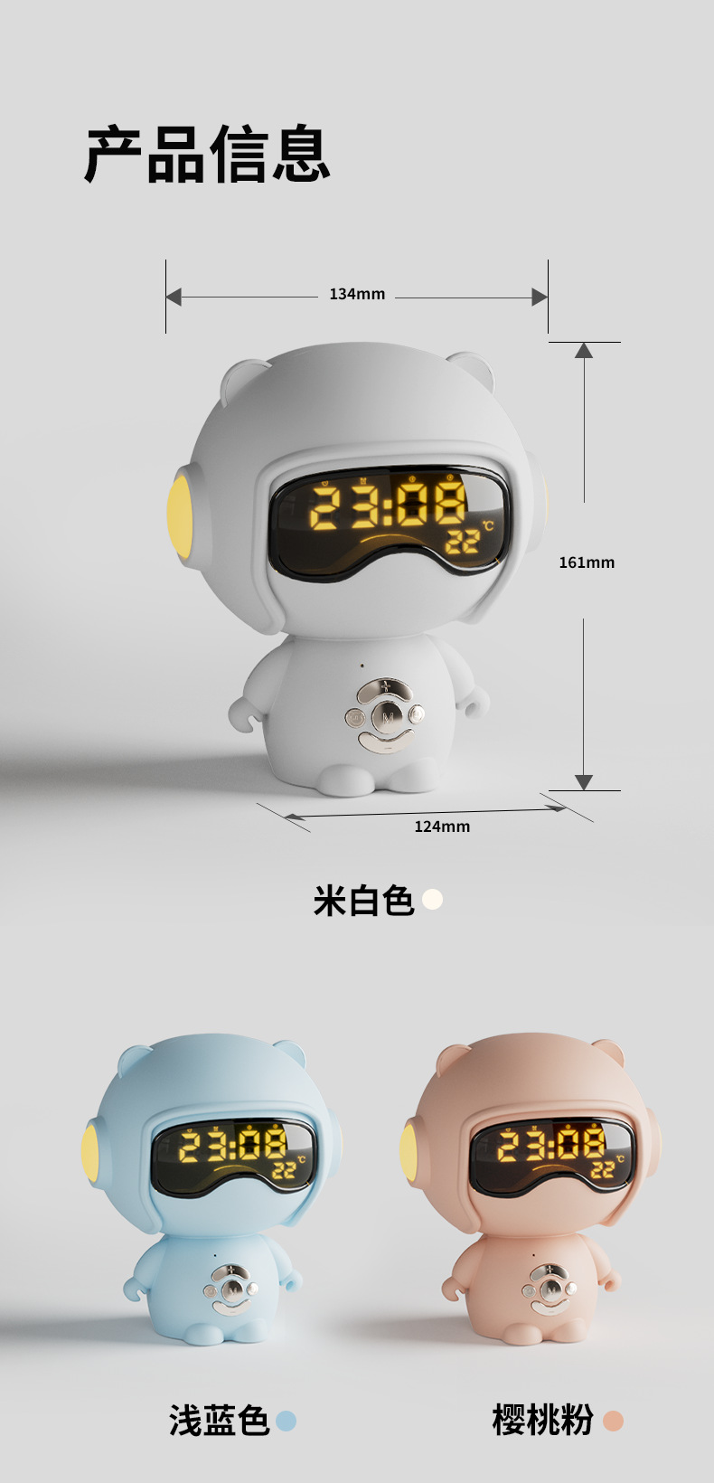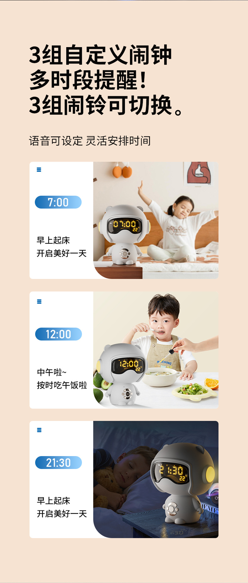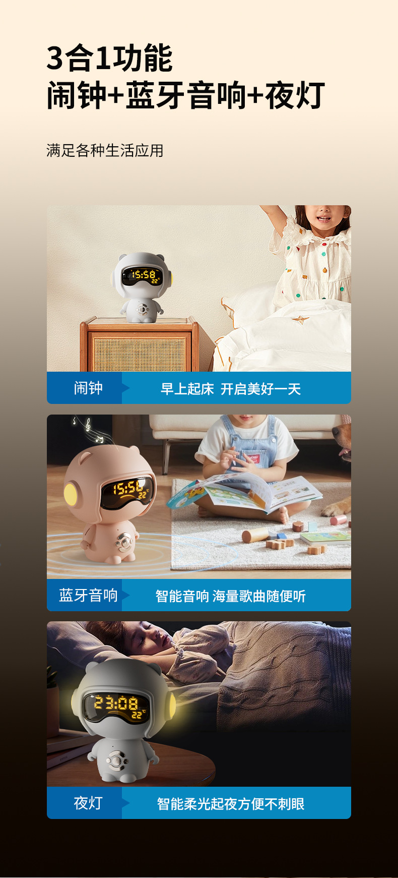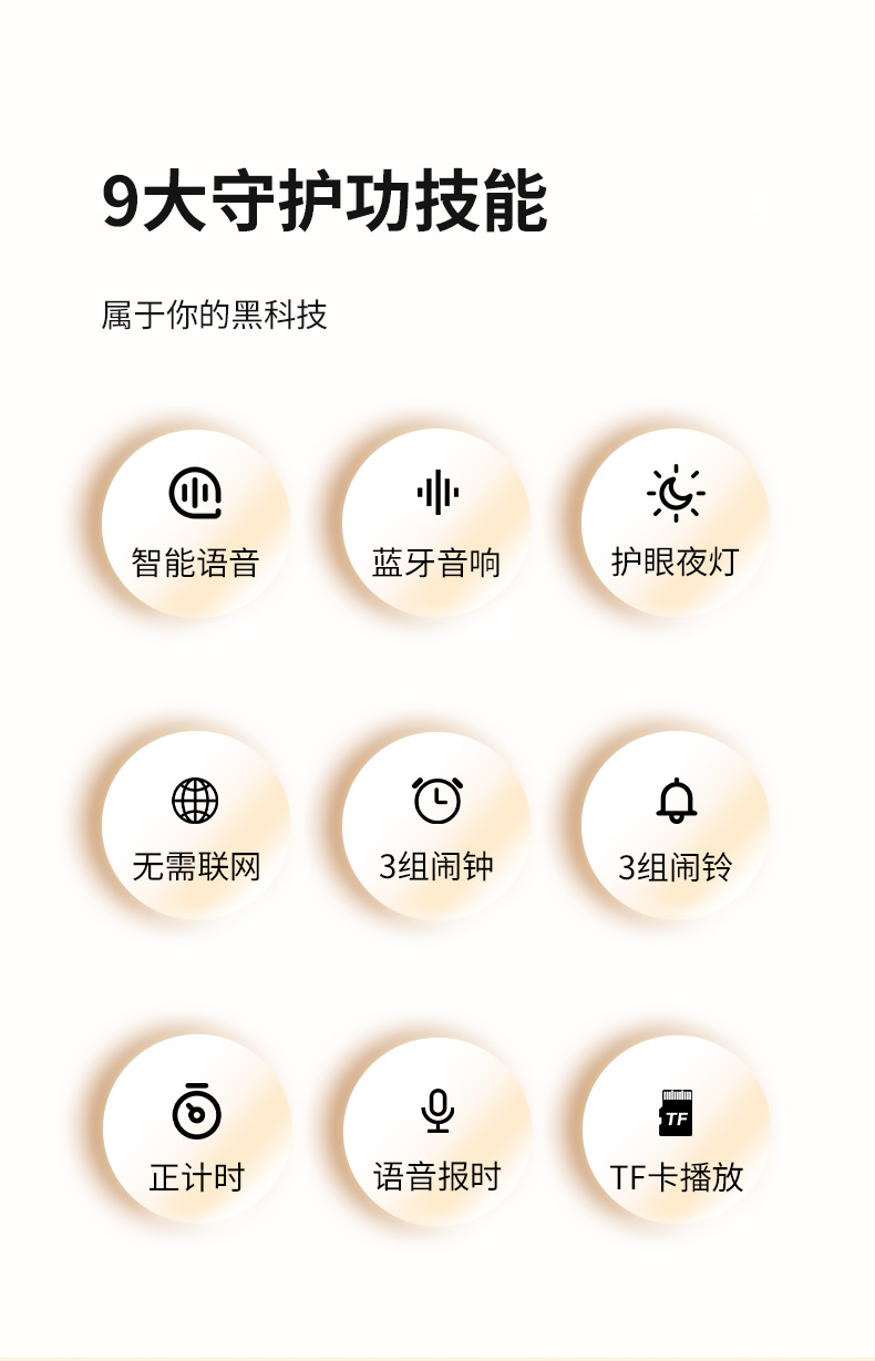 儿童时钟语音设置闹钟TF卡播放小夜灯桌面音箱创意礼品蓝牙小音响