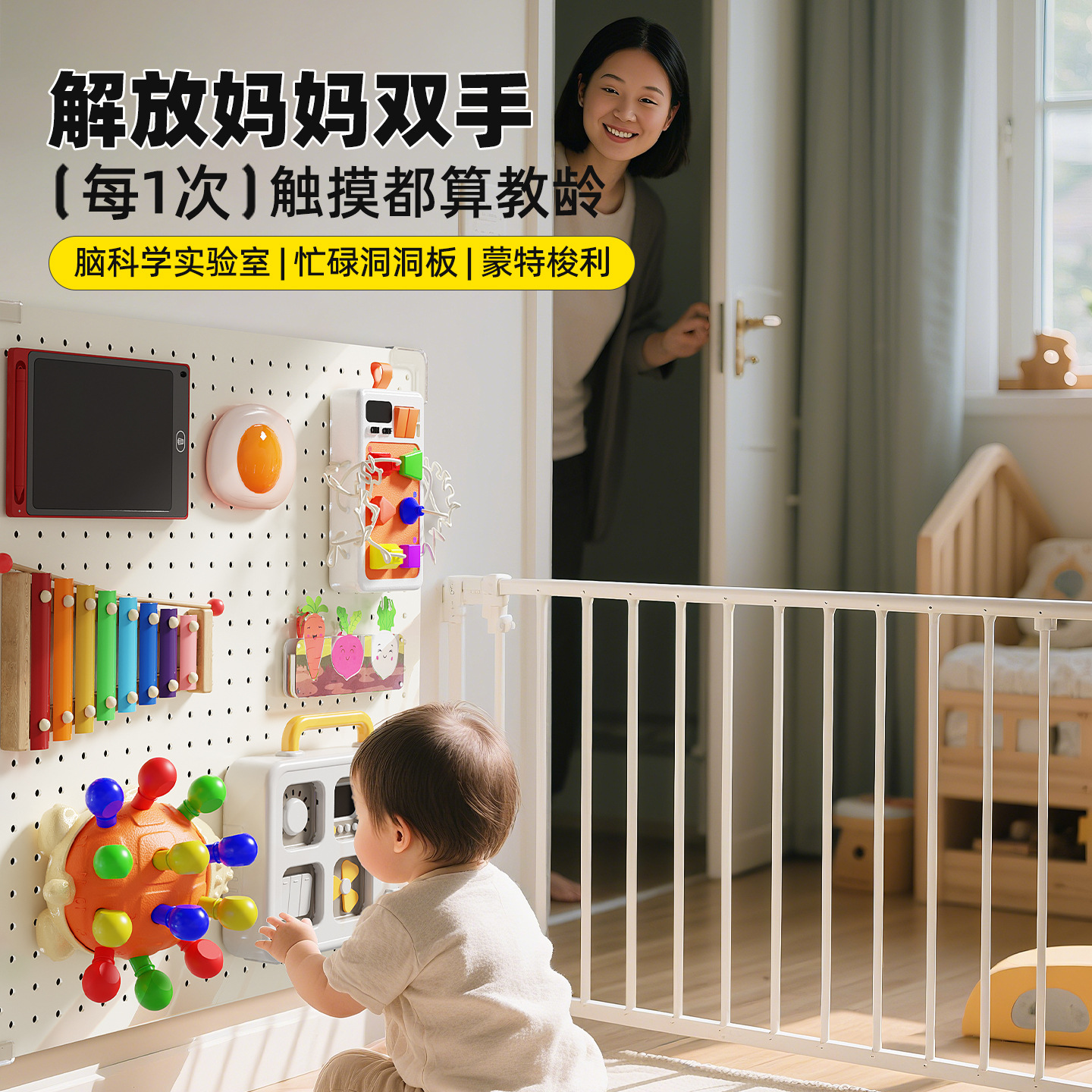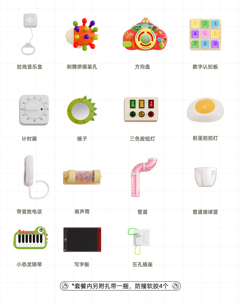 蒙氏早教宝宝忙碌板婴儿启蒙洞洞板蒙特梭利diy配件儿童益智玩具