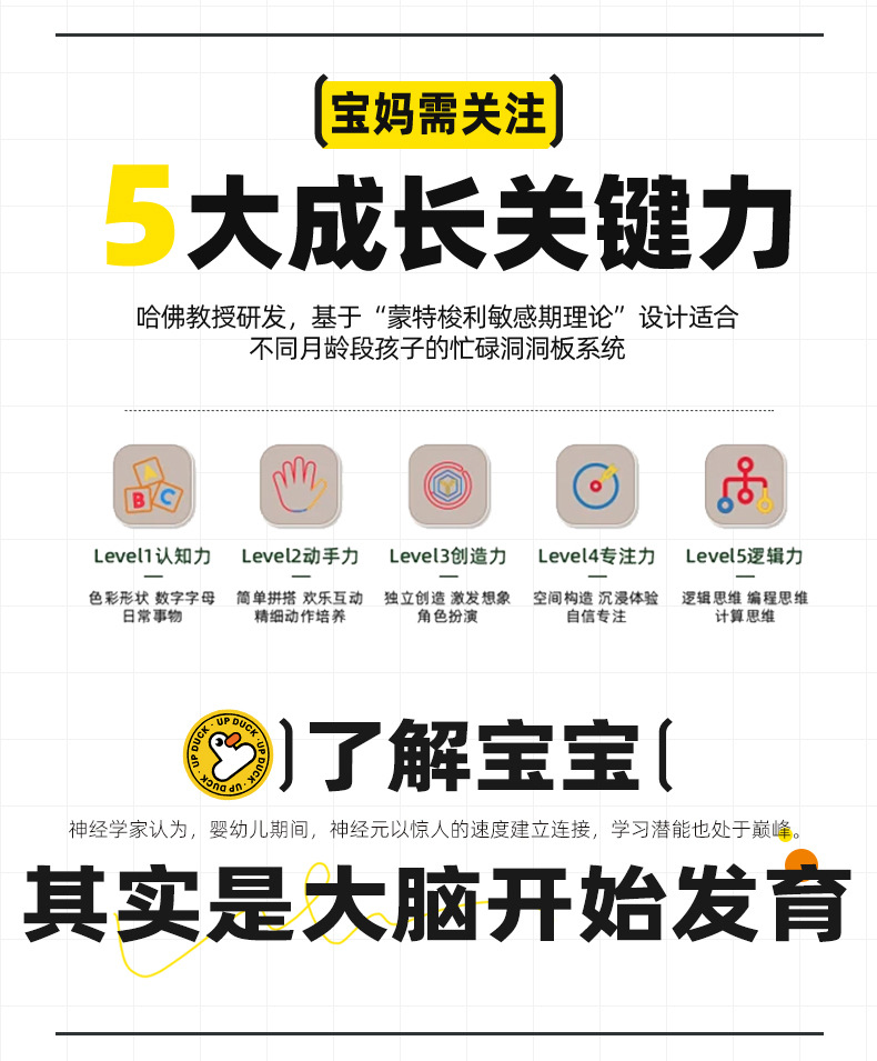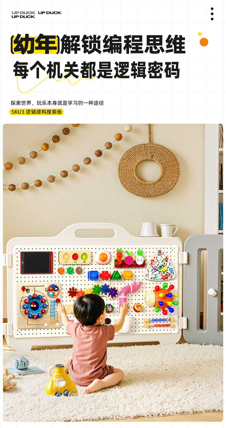 材质: 塑料/塑胶 品牌: 上墙鸭 是否电动: 是 是否多功能: 是 适用年龄: 婴幼(0-3岁) 规格: 忙碌版 是否能够DIY: 是 包装方式: 其他 货号: BG250501 是否外贸: 否 进口地: 国内 能力培养: 智力开发 是否有动漫形象: 否 专利及著作权申请时间: 无 是否有导购视频: 是 科教玩具类型: 益智类 是否专供外贸: 否 3C配置类别: 14岁以下其它玩具 是否跨境出口专供货源: 否 上市时间: 2025年 重量: 0.5 kg/个