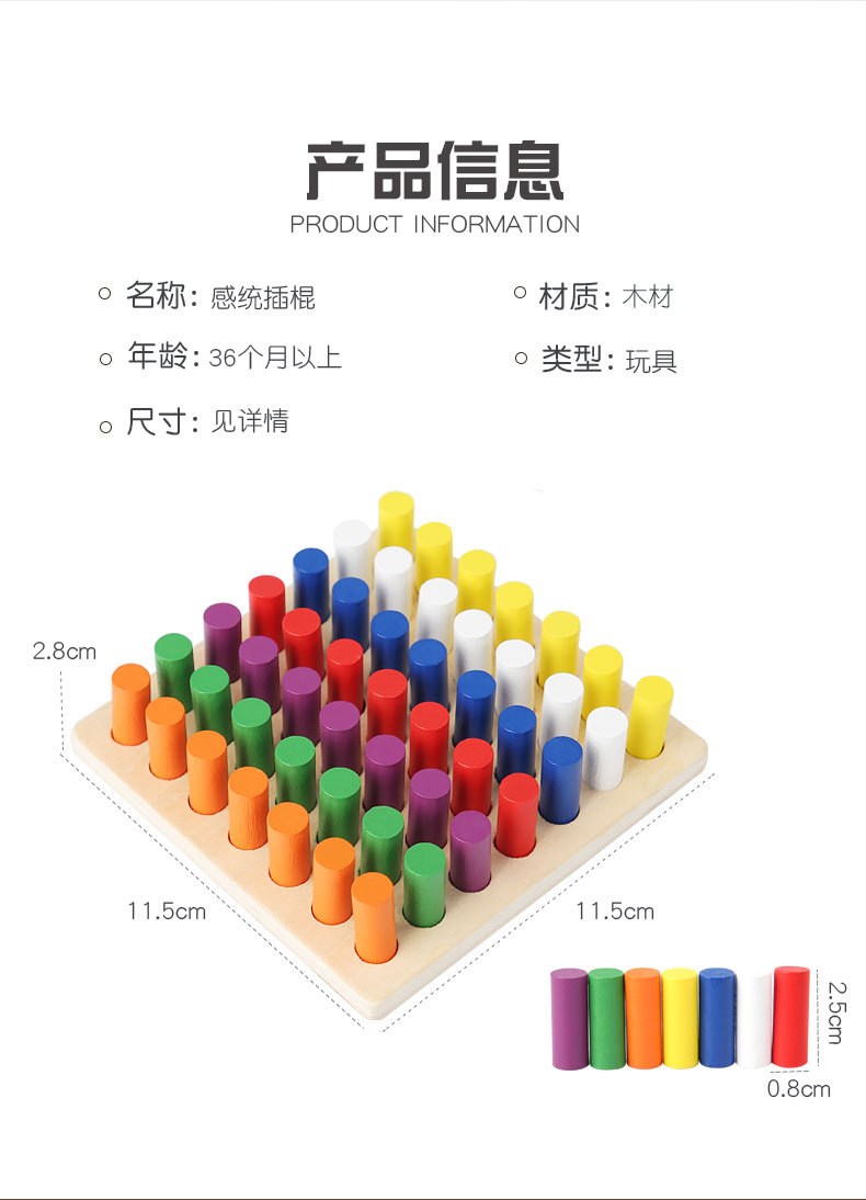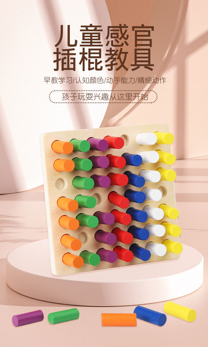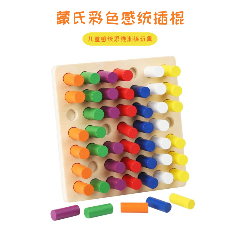 蒙氏感统插棍彩色儿童早教启蒙手眼协调感官训练玩具颜色认知教具