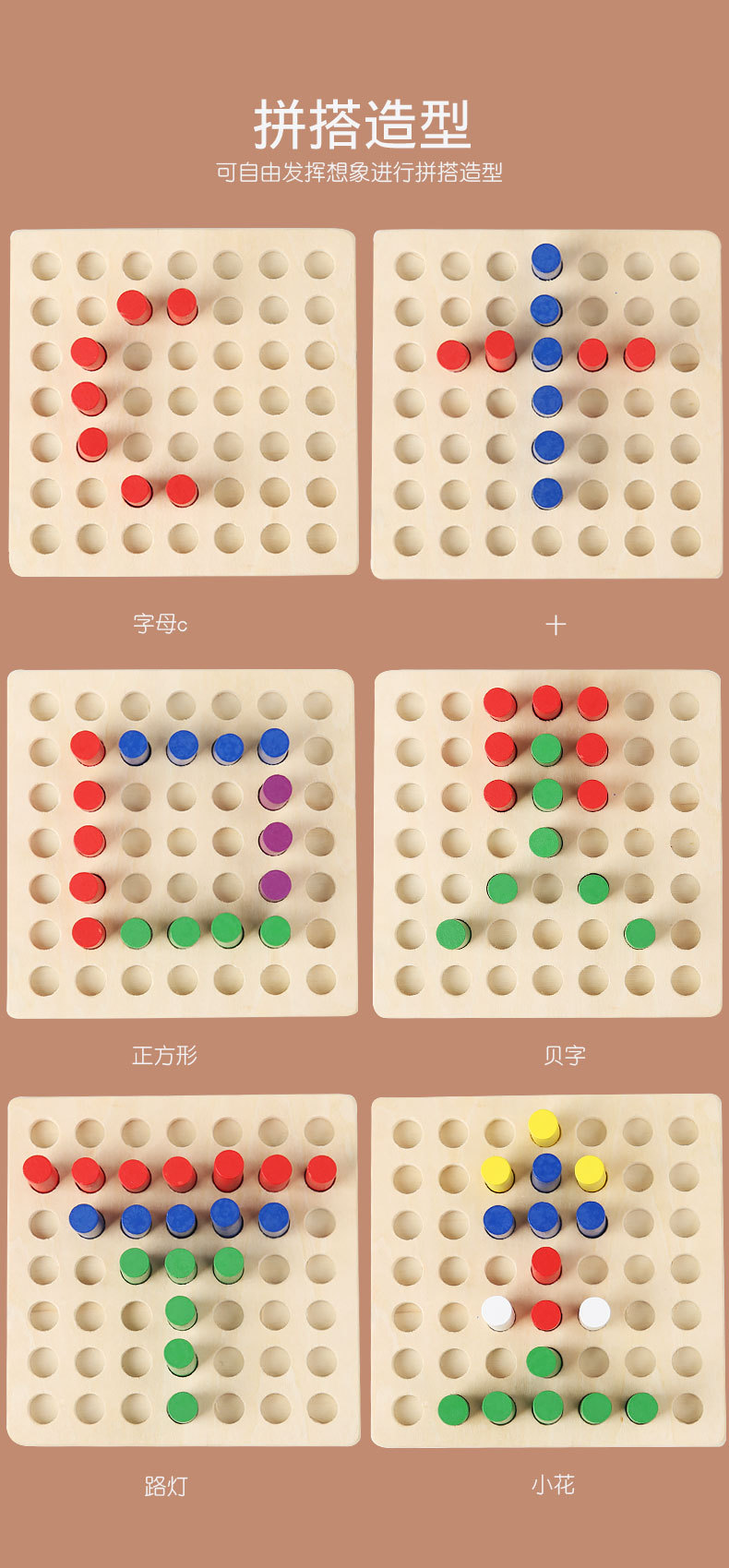 材质: 木制 品牌: 自主品牌 是否电动: 否 是否多功能: 否 适用年龄: 儿童(4-6岁) 规格: 12.5*12.5*3.5 是否能够DIY: 否 包装方式: 彩盒 货号: HX-24061201 是否外贸: 否 能力培养: 动手动脑 是否有导购视频: 是 科教玩具类型: 物理类 是否专供外贸: 否 3C配置类别: 14岁以下的木制玩具 有可授权的自有品牌: 是 是否跨境出口专供货源: 是 感统训练玩具: 颜色配对增强认知 手眼协调感官训练: 分辨颜色精准配对 改变孩子专注力: 锻炼手眼协调能力 重量: 0.5 kg/套