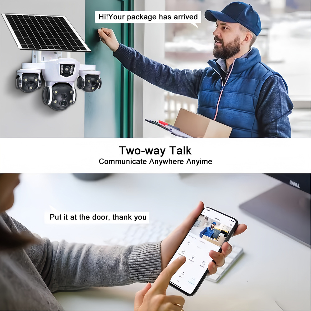 户外太阳能监控摄像头 三镜头 10 倍变焦 6MP 高清 彩色夜视安防 投诉