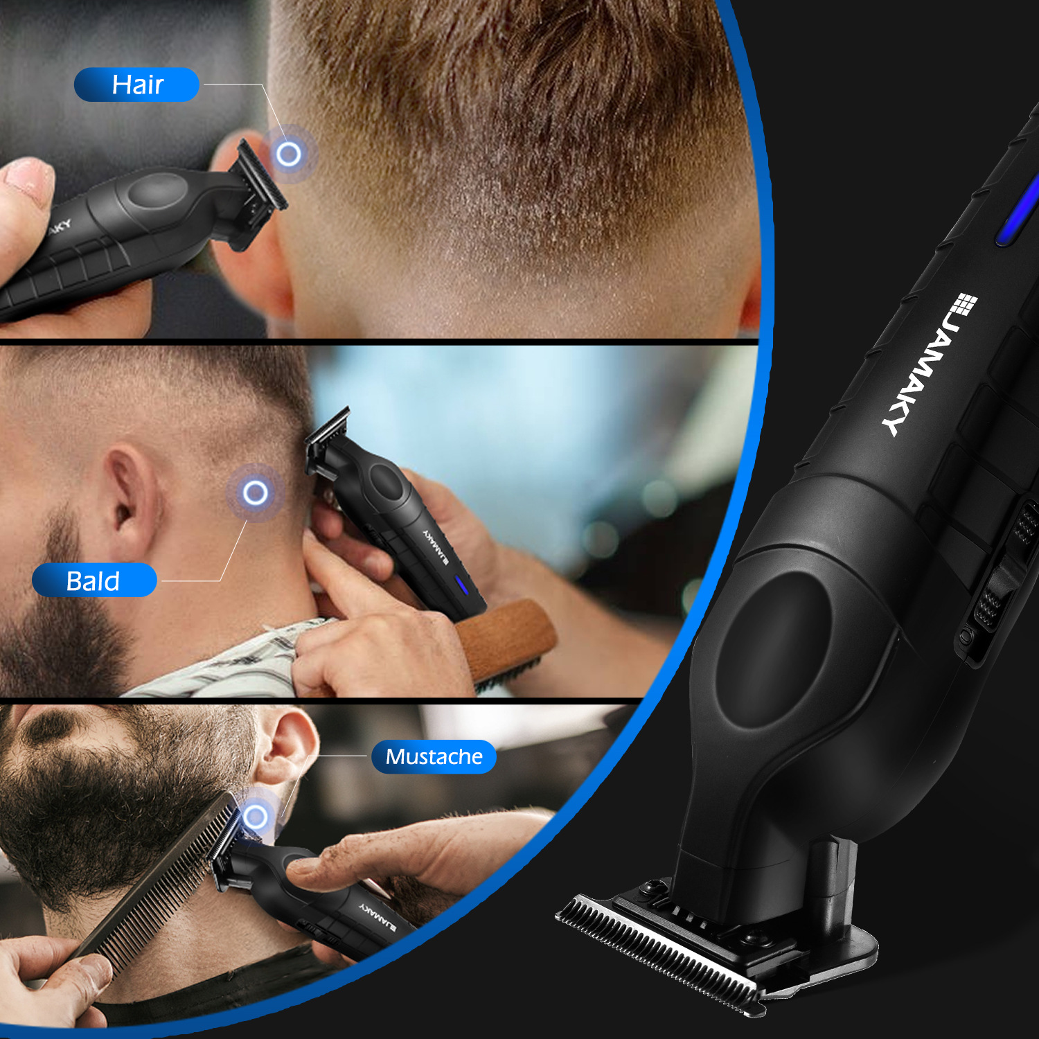 配件:黑色限位梳*4(1.5mm,3mm,6mm,9mm),刀头保护罩,清洁刷,润滑油,1mUSB