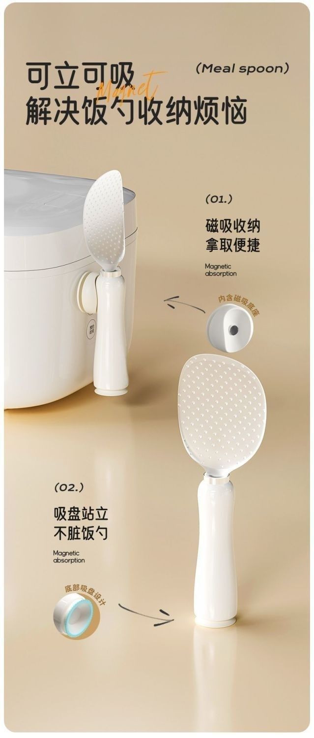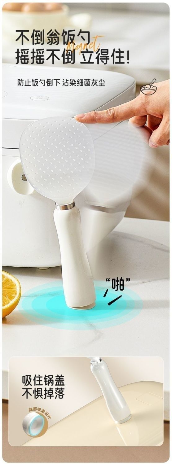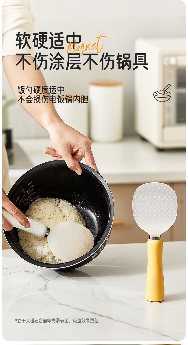 家用加厚食品级饭勺可立式磁吸不倒翁不粘米饭勺子电饭煲盛饭勺子 English | 投诉
