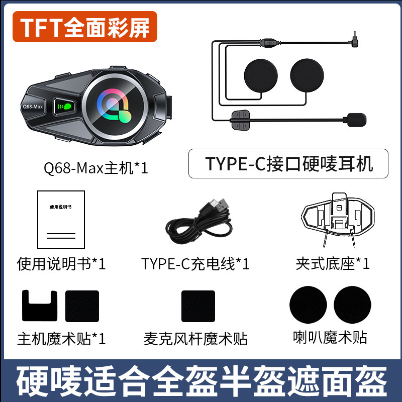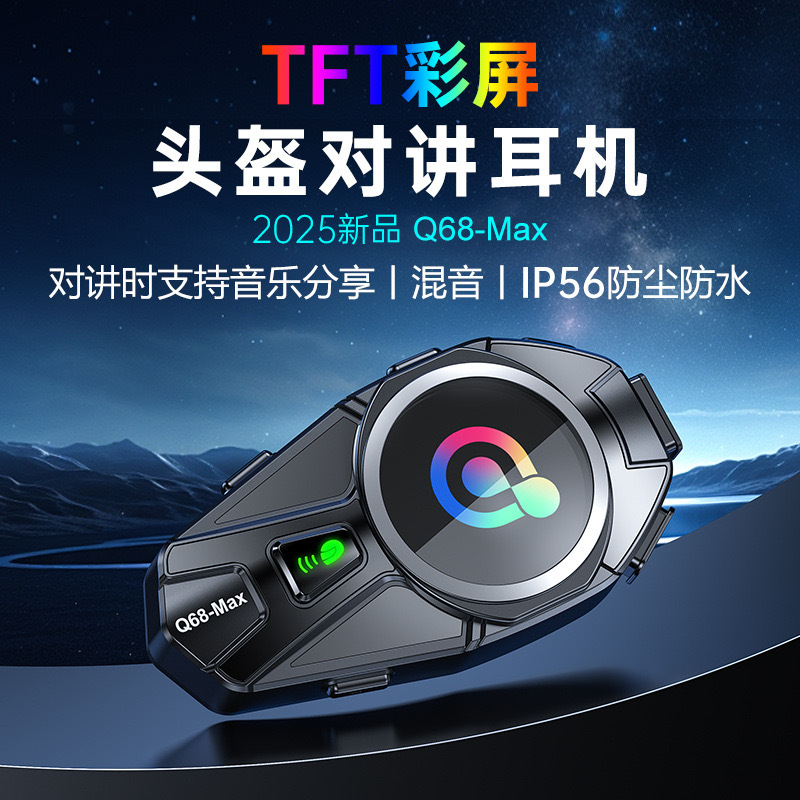 5、功能特点:TFT彩屏显示 双芯蓝牙5.4,通话清晰,声音大,1V1对讲,混音,FM收音,音乐广播N+,对讲和音乐分享同时存在。