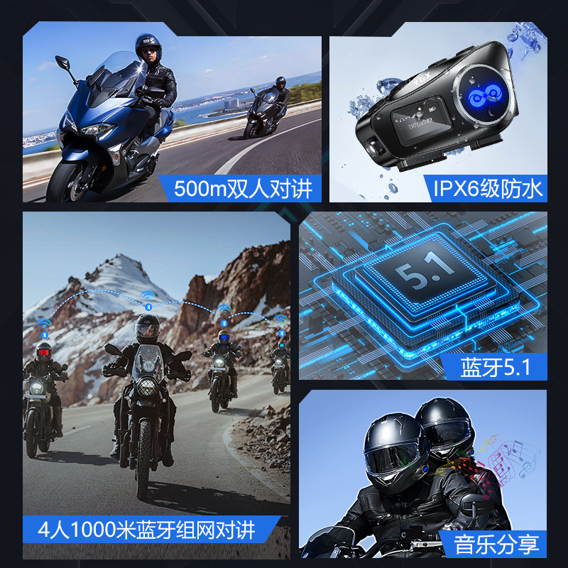9、蓝牙通话,清晰,声音大,支持双人模式对讲,支持4人组网、可连接第三方蓝牙变成对讲。