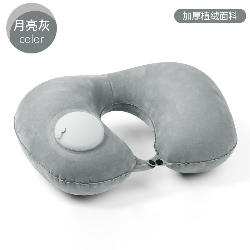 植绒充气u型枕自动tpu按压旅行枕牛奶丝充气枕旅游三宝一件代发