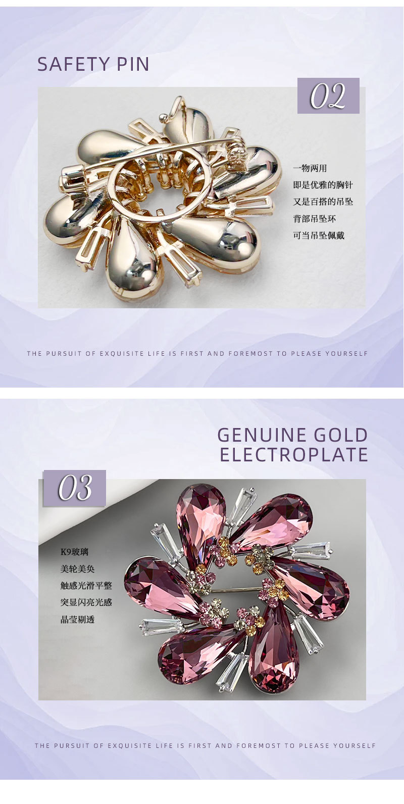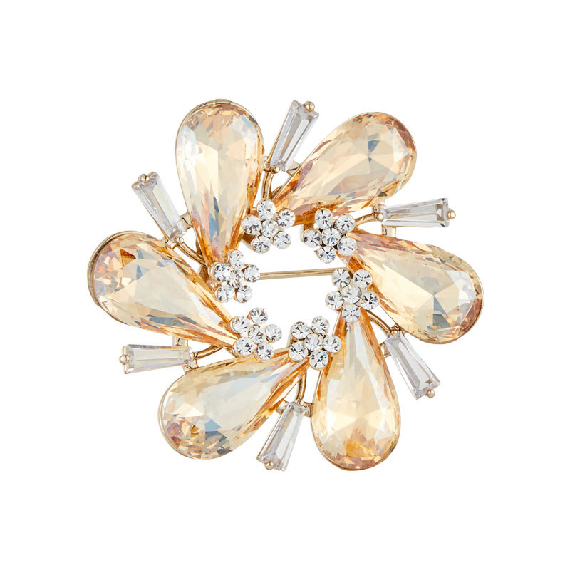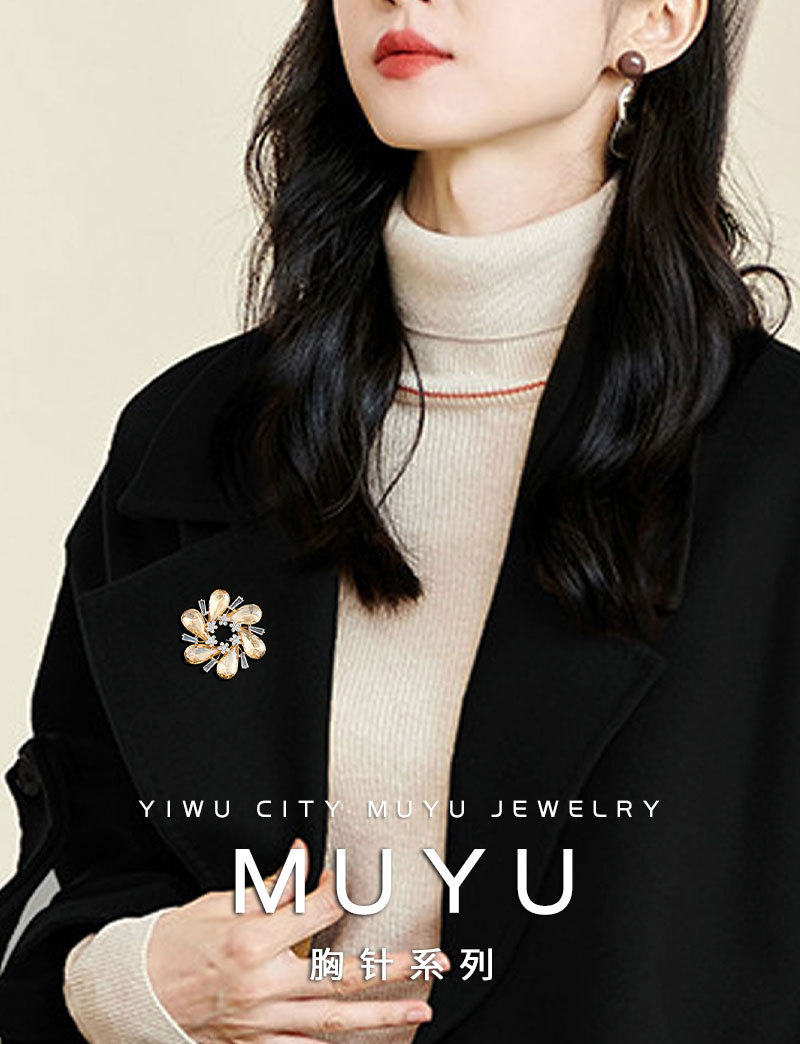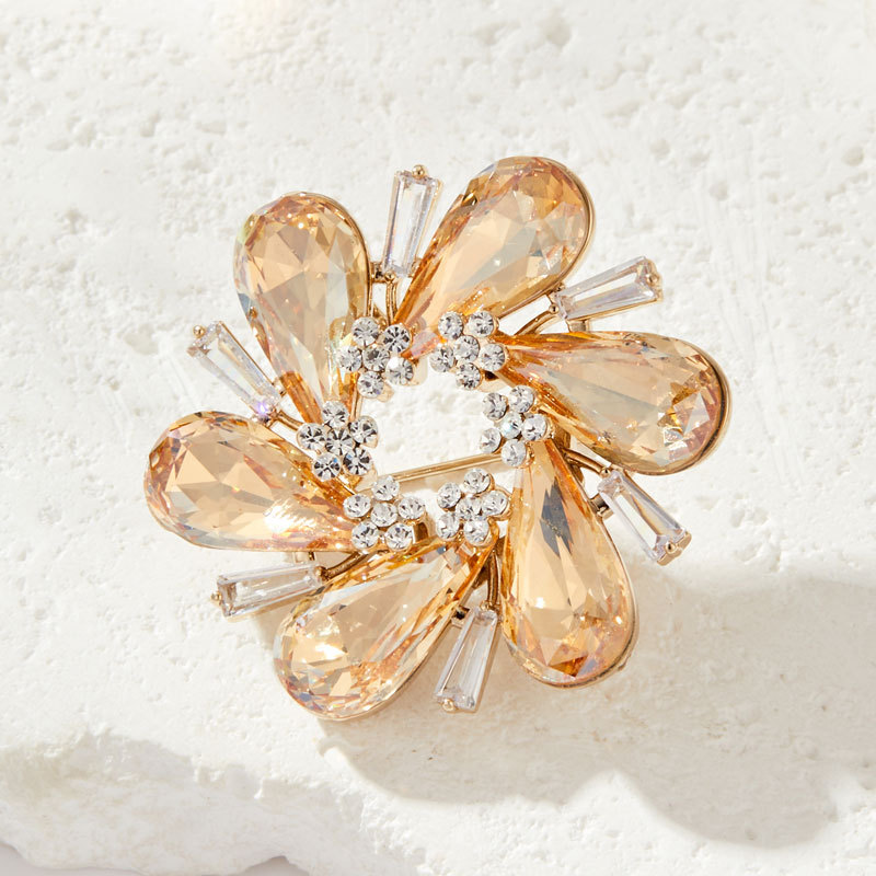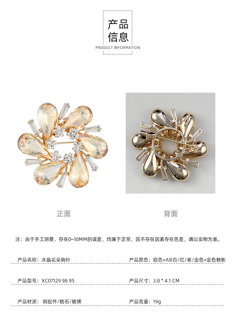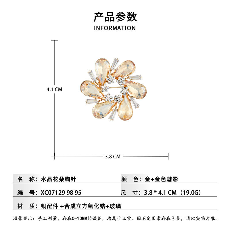 璀璨绽放优雅水晶花朵胸针高级感金色魅影衣饰胸花新款时尚女别针 投诉